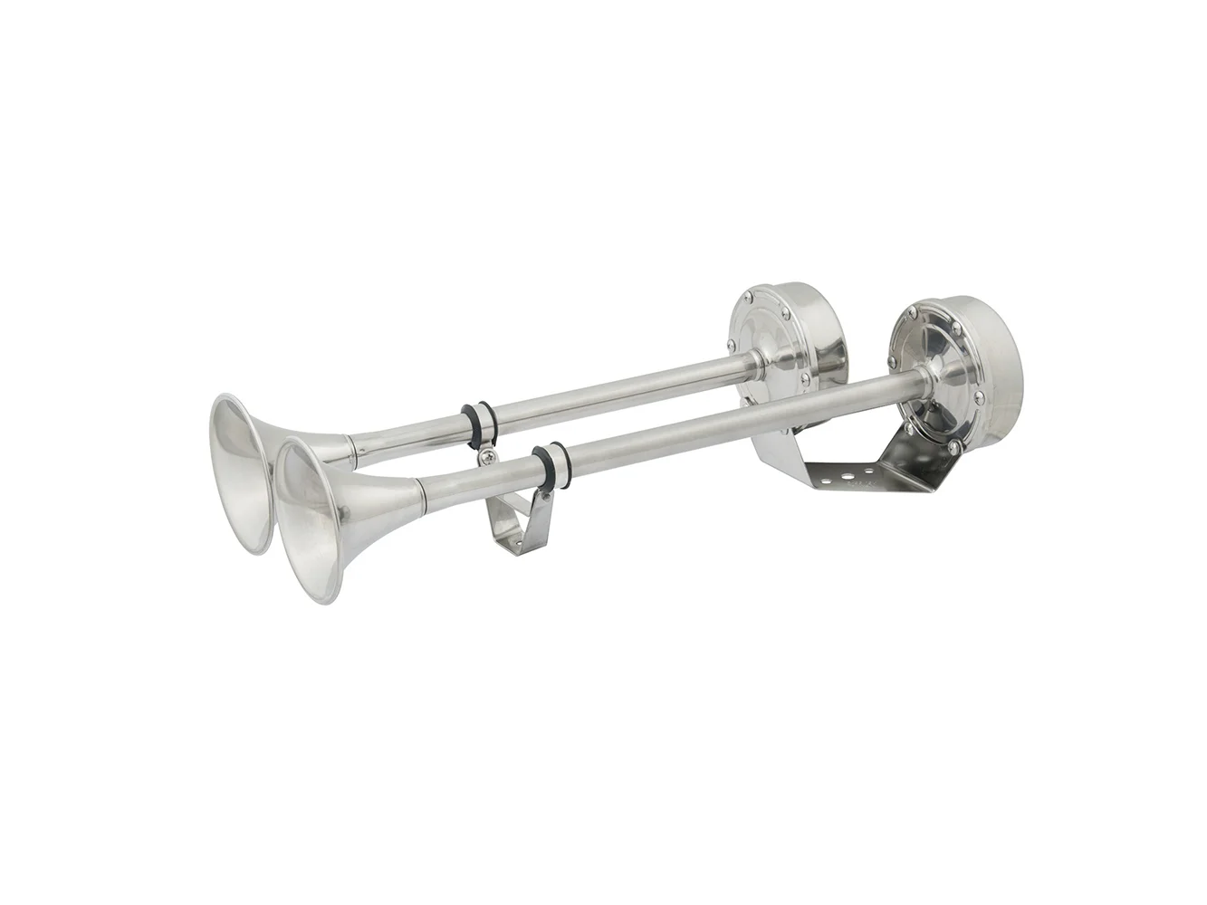 Marinco is the leading supplier of horns to the marine industry, with over fifty years of experience in designing and manufacturing sound devices specifically for use in harsh marine environments. Stainless steel is used for all critical components such as trumpets, motor cover, diaphragms, assembly and mounting hardware. In the case of the XLP trumpet horns, the horn is given extra protection through the complete over-molding of the internal motor cover housing. It is this extra process that provides the added protection needed to back up the five-year warranty.