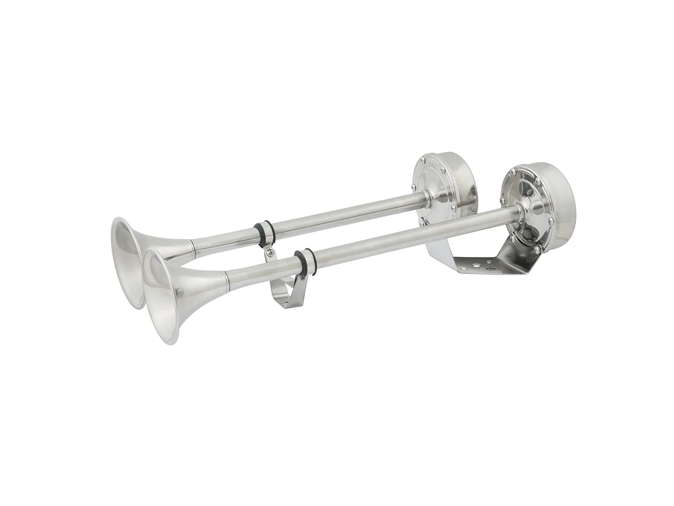 Marinco is the leading supplier of horns to the marine industry, with over fifty years of experience in designing and manufacturing sound devices specifically for use in harsh marine environments. Stainless steel is used for all critical components such as trumpets, motor cover, diaphragms, assembly and mounting hardware. In the case of the XLP trumpet horns, the horn is given extra protection through the complete over-molding of the internal motor cover housing. It is this extra process that provides the added protection needed to back up the five-year warranty.