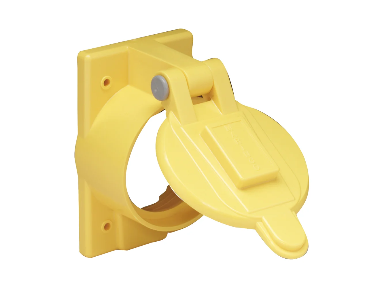 This yellow LEXAN® polycarbonate with lift lid is for use with Marinco receptacles.