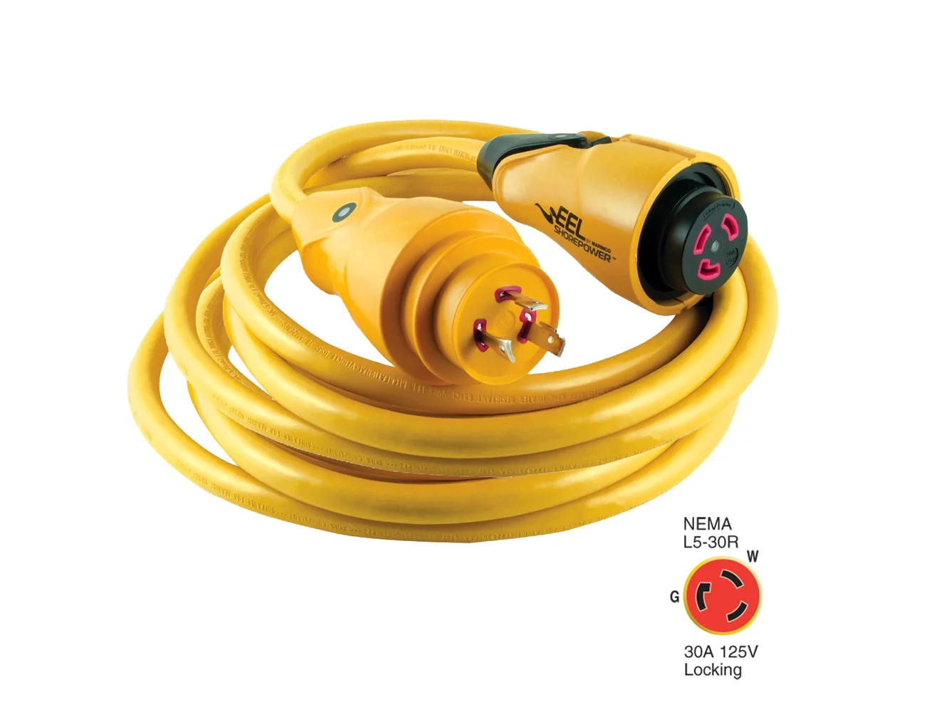 30A, 125V capacities; 50′ length - Cord sets meet global industry standards including ABYC and UL