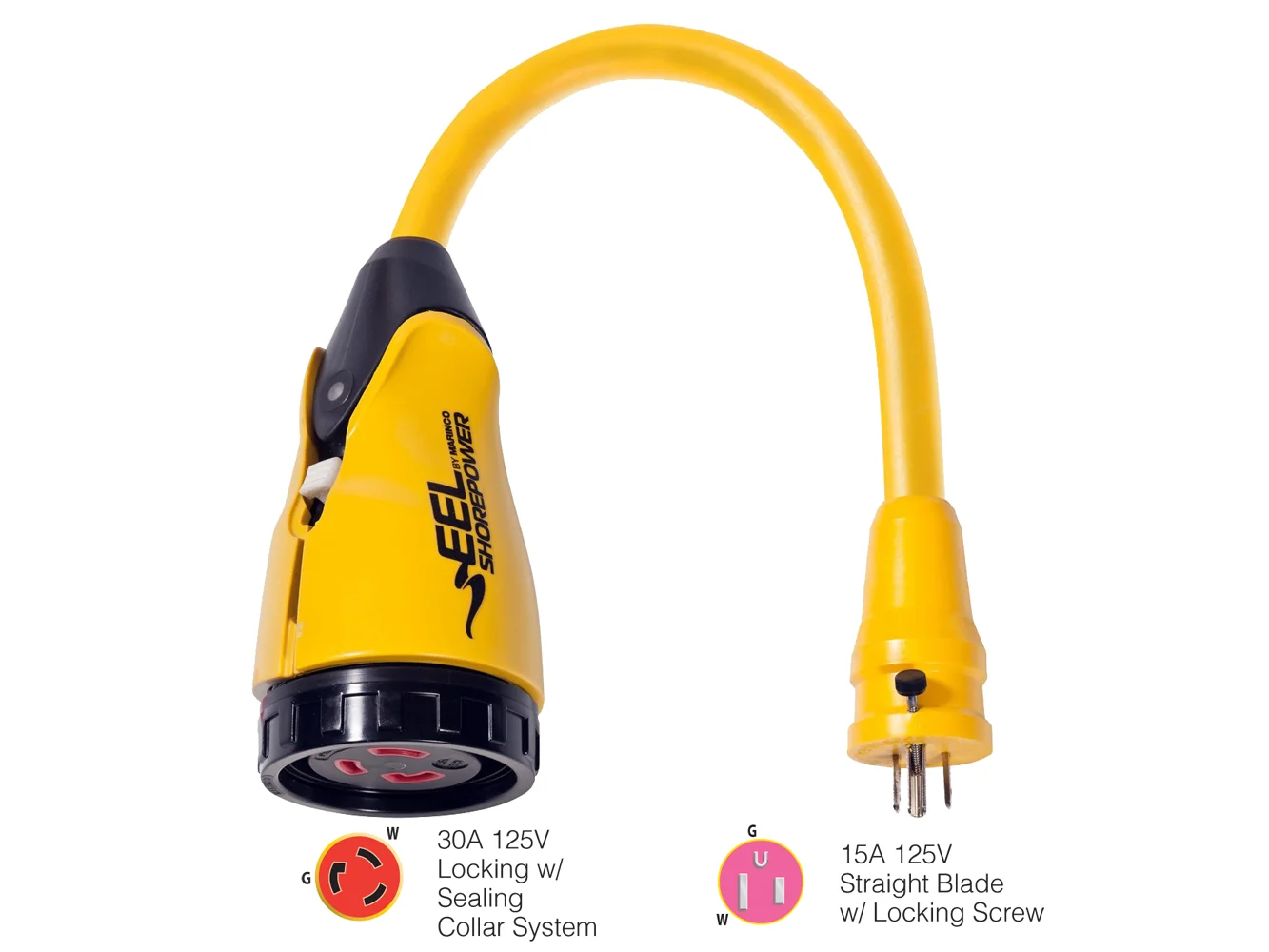 Marinco P15-30 EEL 30A-125V Female to 15A-125V Male Pigtail Adapter – Yellow