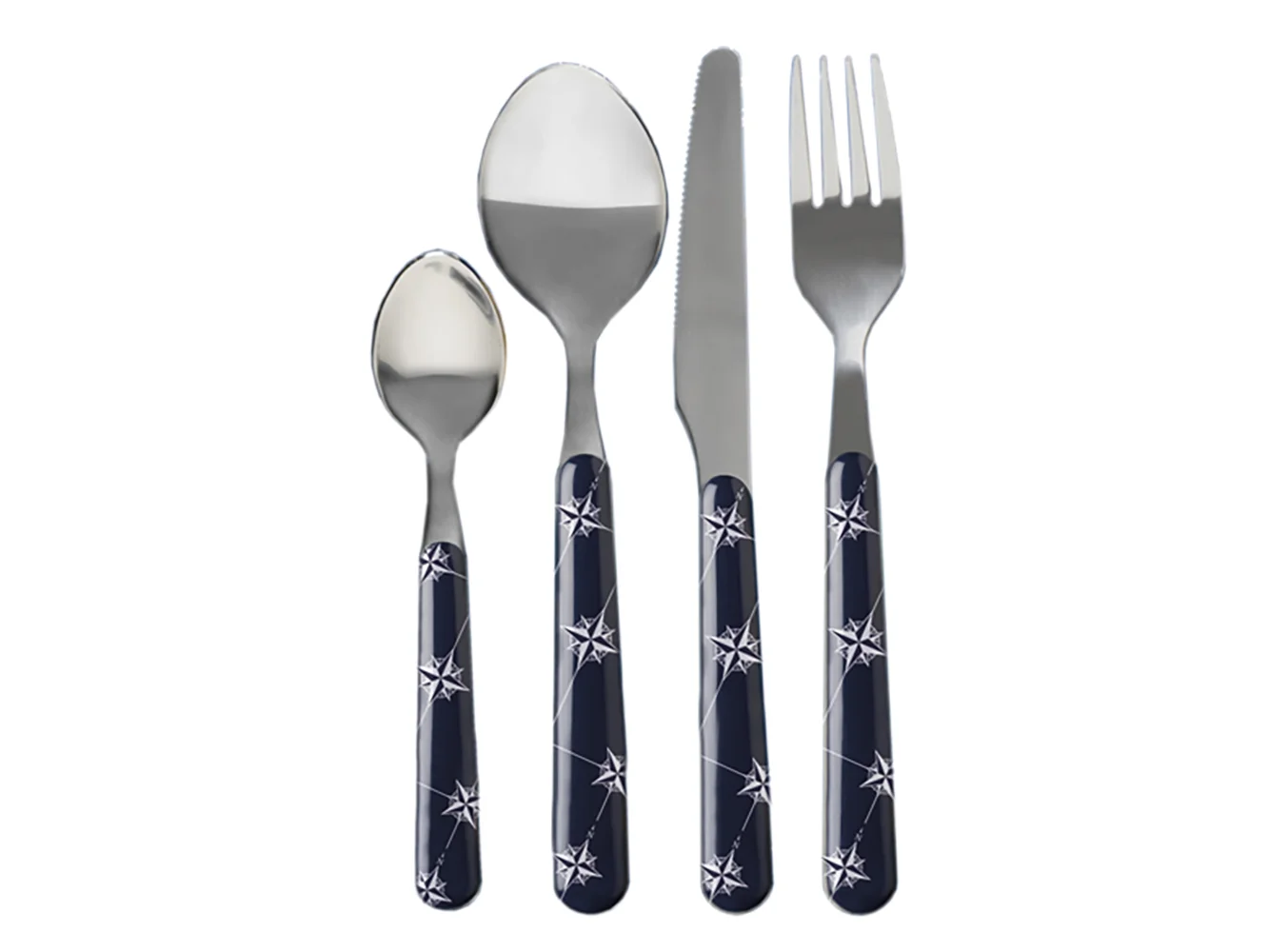 The 24 piece NORTHWIND cutlery set (6 people) is made of stainless steel and has the compass rose screen-printed on its ABS handle. To match the melamine tableware, the NORTHWIND cutlery is a must for a beautifully coordinated table.
