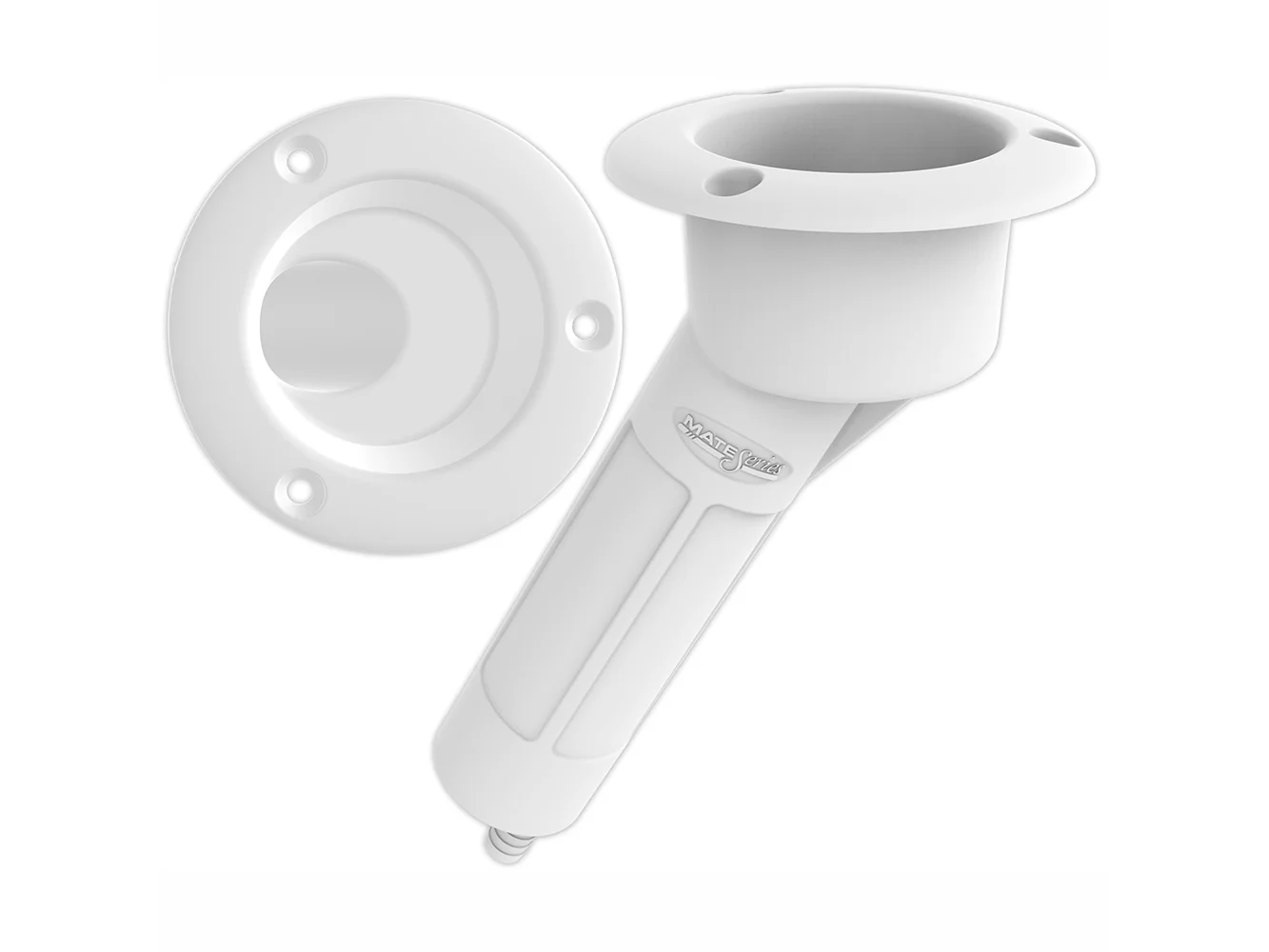 Plastic 30° Rod & Cup Holder – Drain – Round Top – White