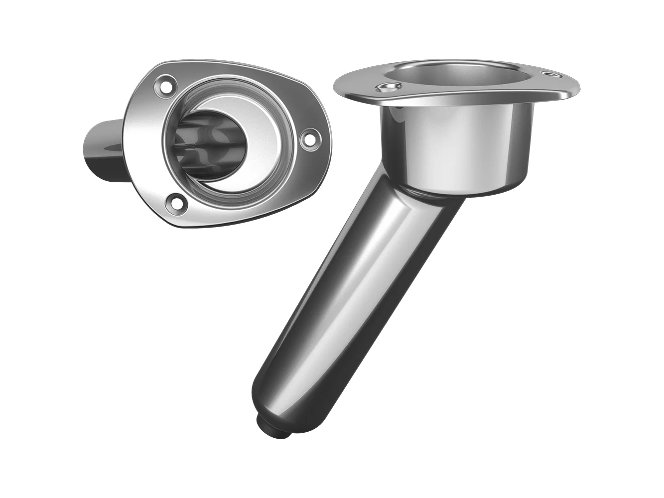 Mate Series Stainless Steel 15° Rod & Cup Holder - Drain - Oval Top