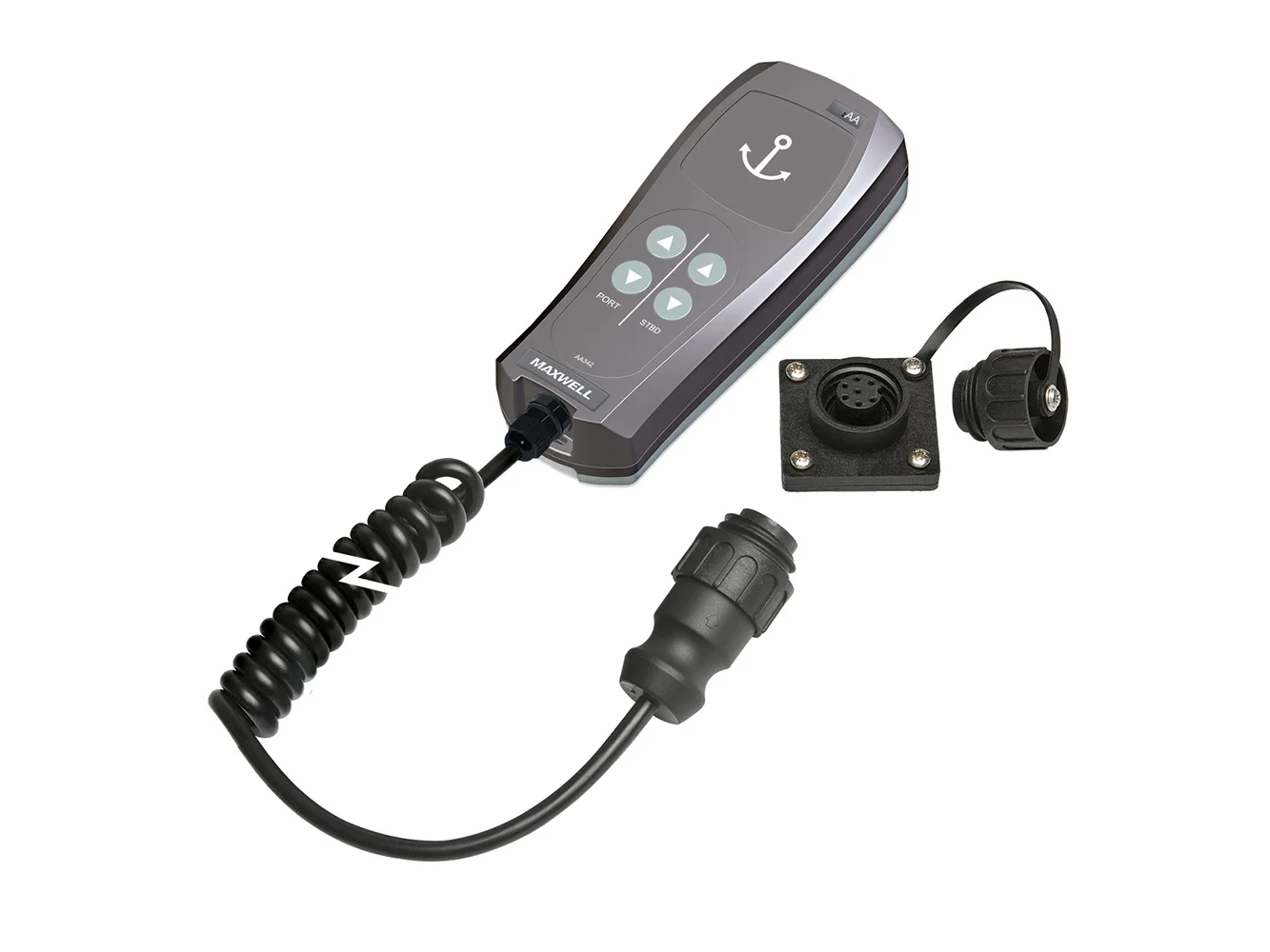 This is a handheld wired roving dual windlass controller. The remote has 4 outputs unit that can be installed to meet your specific requirements.