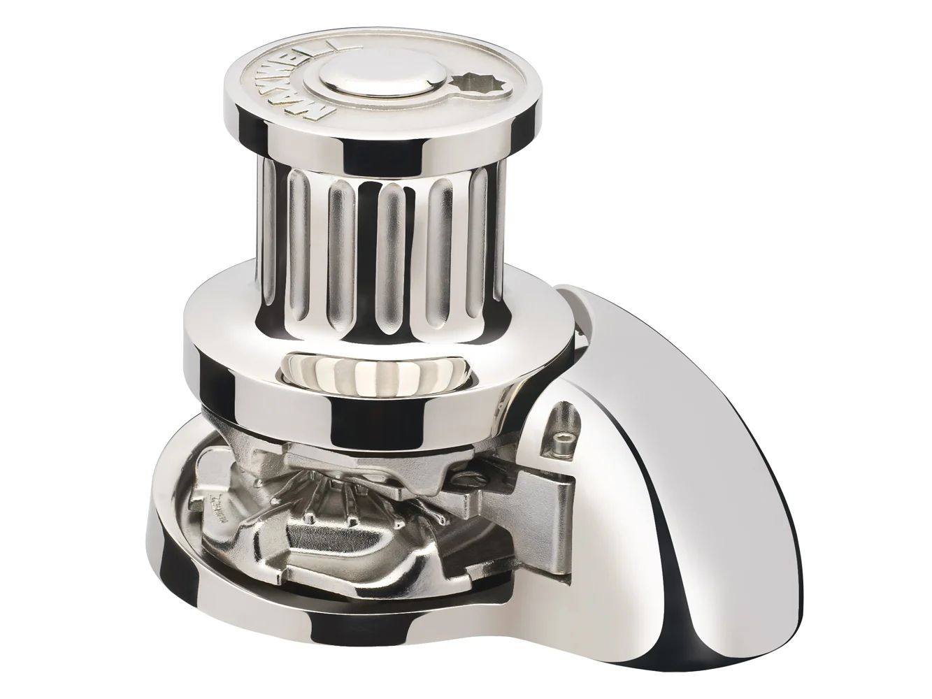 The elegantly designed deckplate and chainpipe cover are manufactured in polished marine-grade 316 stainless steel, as are the heavy duty pressure arm, stripper, chainwheel and fluted capstan drum.