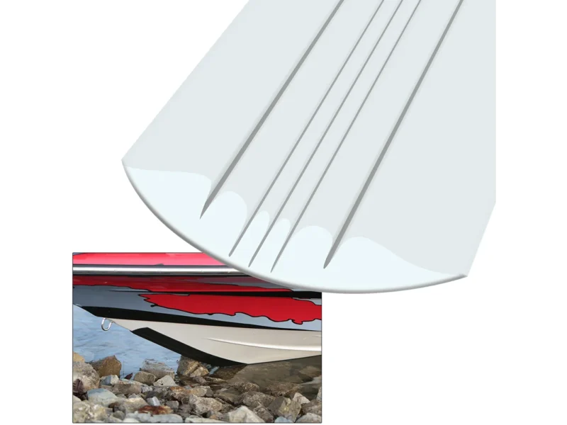Every aspect of the patented Megaware KeelGuard® has been designed with boat designers and 3M® engineers. Many factors contribute to its success. A precise, abrasive-resistant blend of polymers and urethanes achieve optimal durability and pliability. A pressure-sensitive adhesive creates strength, while permanently bonding and sealing Megaware KeelGuard®’s contoured edges to the hull surface. Angled grooves produce hydrodynamic channels, creating air pockets and providing a slicker surface. The perfect combination of these factors makes the Megaware KeelGuard® the easiest keel protector to install, and gives it unparalleled quality and dependability.