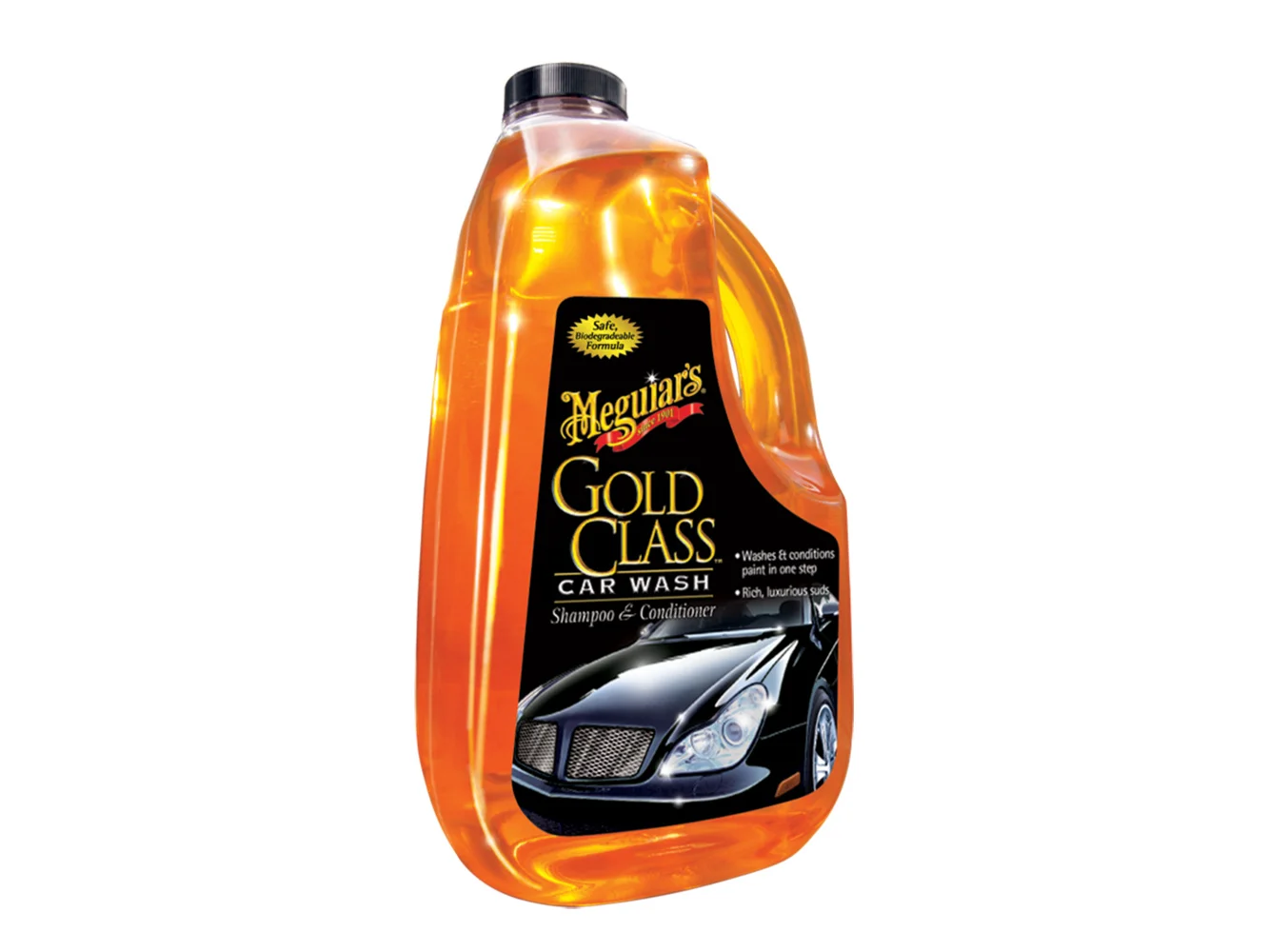 Meguiar’s Gold Class™ Car Wash Shampoo and Conditioner is a rich and luxurious product designed to both clean and condition paint in one easy step. The premium formula gently foams away tough dirt, road grime & contaminants without compromising wax protection. Ultra-rich paint conditioners clear away debris to reveal color and clarity, leaving the paint looking radiant. *Detergents biodegradable per Regulation (EC) No 648/2004.