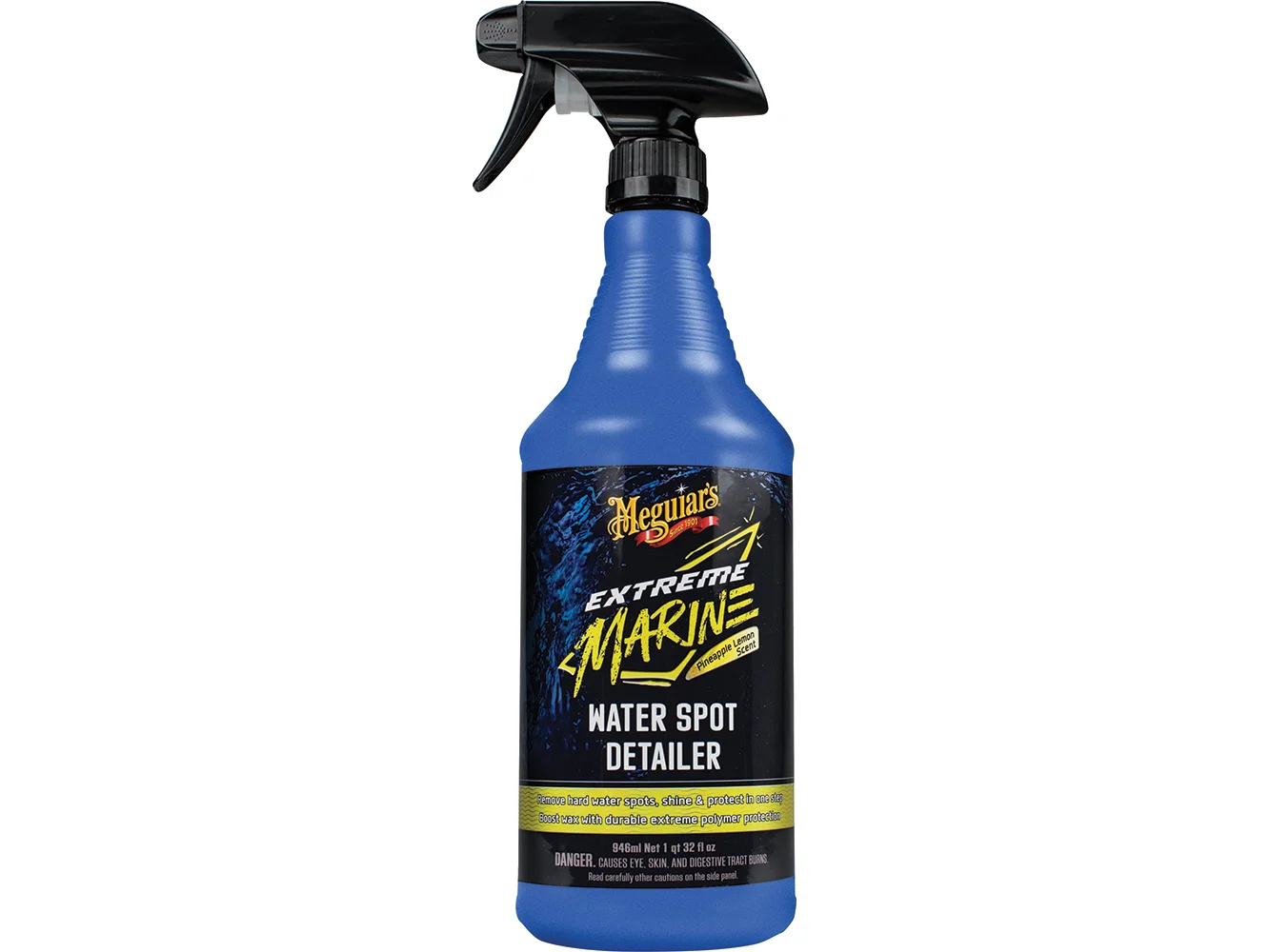 Two amazing products in one – Extreme Marine Water Spot Detailer utilizes cutting-edge technology to allow users to combine safe-yet-effective water spot removal with beautifying & extremely durable advanced polymer protection in one easy step! No need to scrub or polish, just spray, let dwell, and wipe away water spots, stains, dirt and grime from painted, fiberglass, gel coat, glass and stainless steel surfaces.