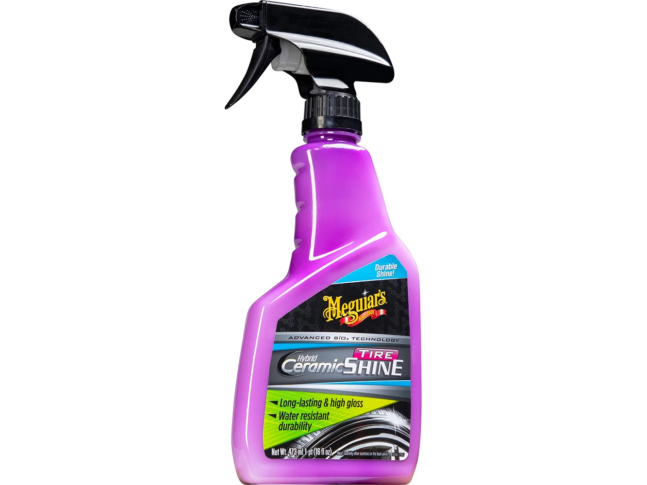 Meguiar’s Hybrid Ceramic Tire Shine renews dull-looking tires with premium gloss enhancers, by darkening the appearance and adding gloss. Advanced Hybrid Ceramic technology provides durable protection that keeps shining even when exposed to water! Plus, it bonds well to tires, reducing the likelihood of a sling.