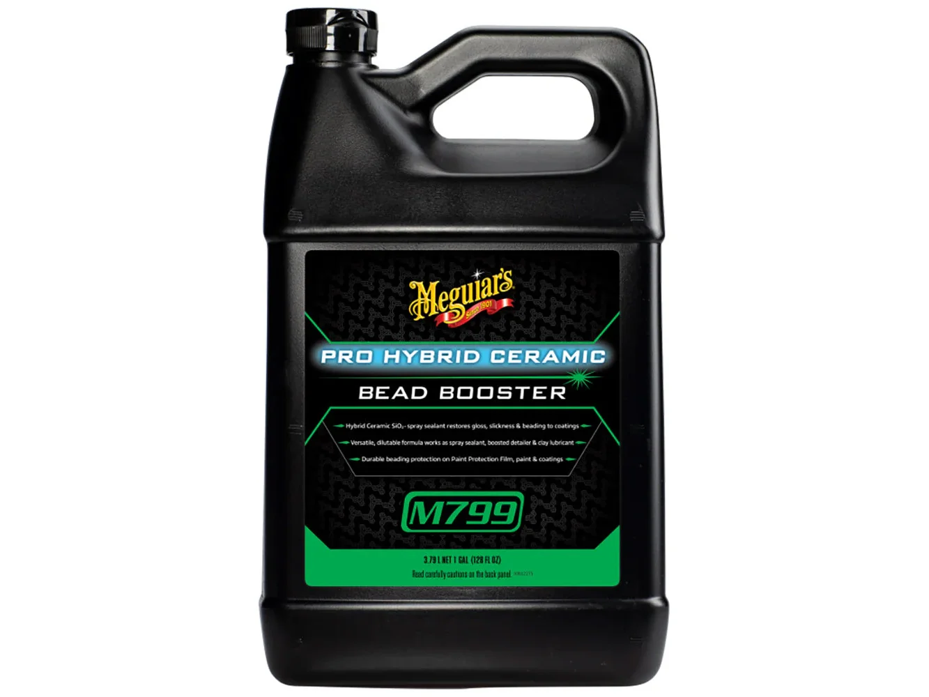 Meguiar's M799 Pro Ceramic Bead Booster is an extremely versatile pro-grade formula that can be used in several different ways, including: as a coating topper, drying aide, boosted spray detailer, or synthetic clay bar lubricant. It delivers outstanding results when used as a drying aide, quick detailer, and clay lube. Use M799 at full strength as a standalone sealant or as a maintenance product over other ceramic coatings. Dilute 1 part water to 3 parts M799 for use as a clay lube, drying aide, or as a boosted quick detailer that can even be used in the sun. No matter how you use it, expect to get excellent durability, darkness, gloss, and slickness with an easy-to-use spray. M799 Pro Hybrid Ceramic Bead Booster is available in 32-ounce and 1-gallon sizes.