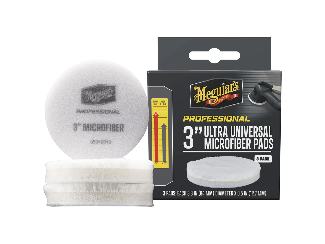 - POWERFUL SCRATCH REMOVAL DISCS: Meguiar's Pro M3MFP3 3" Microfiber Ultra Universal Microfiber Pad effortlessly and efficiently cut through heavy surface defects, scratches, and imperfections with a compound while also boosting paint gloss and shine