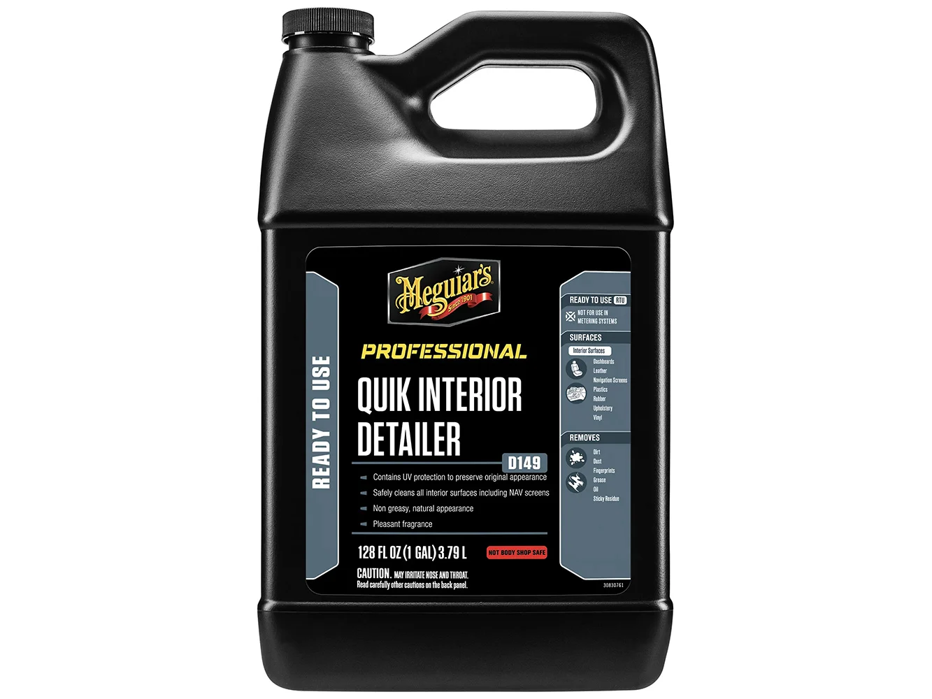 Meguiar's Quik Interior Detailer cleans and protects all interior surfaces quickly and easily. This spray-on, wipe-off high-lubricity formula maintains the natural look and feel of interior plastics, vinyl, leather, rubber, metal, carbon fiber, wood, and even audio/video equipment. Effectively removes dust, ashes, dirt, grime, spills, and fingerprints without build-up, while leaving a durable, non-greasy UV protectant. Meets CARB's VOC limit for General Purpose Cleaners.
