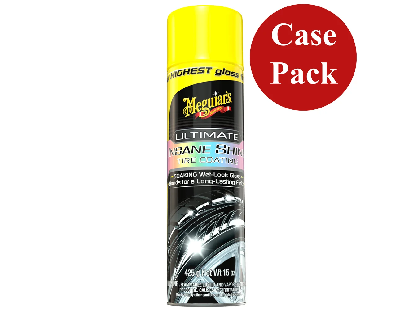 Meguiar’s Ultimate Insane Shine Tire Coating is the highest gloss tire shine Meguiar’s has to offer. With advanced synthetic polymer chemistry this premium aerosol tire shine delivers extreme, attention-grabbing depth with amazing shine and gloss. You won’t believe your eyes as tires will appear like they are actually wet! Our exclusive formula also contains enhanced resin technology producing an amazing bond for a long-lasting finish. Anti-ozonants protect tires against cracking and fading over time while the self-spreading formula is easy to work with reducing streaks and runs. So, if you are looking for a tire coating that offers protection, is easy to use and with a shine that looks like it’s soaking wet, Meguiar’s Ultimate Insane Shine Tire Coating is for you.