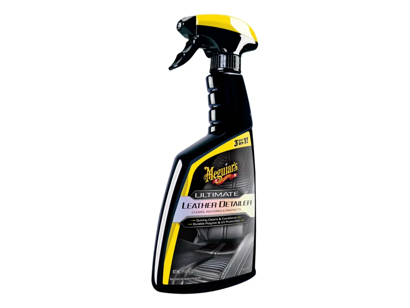 Meguiar’s Ultimate Leather Detailer provides a quick & easy solution to maintain your leather’s look & feel. Powerful cleaning ingredients safely remove dirt & grime to restore leather’s natural appearance. Aloe and rich conditioning agents provide a soft and supple feel and look. UV blockers and protective polymers work together to keep your leather protected. The result is clean, nourished, and protected leather that has a deep, rich satin gloss making your leather look its best.