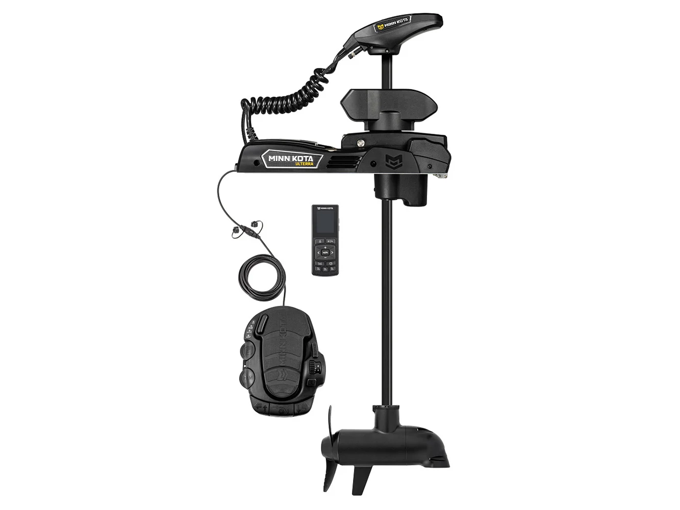 Ulterra 90/115 lb. 45″ trolling motor with Built-In Dual Spectrum CHIRP, wireless remote, Lanyard, Corded Foot Pedal, MKP-40 Prop, 30′ ethernet cable, Humminbird HELIX adapter cables for Ethernet and built in sonar and Mounting Hardware