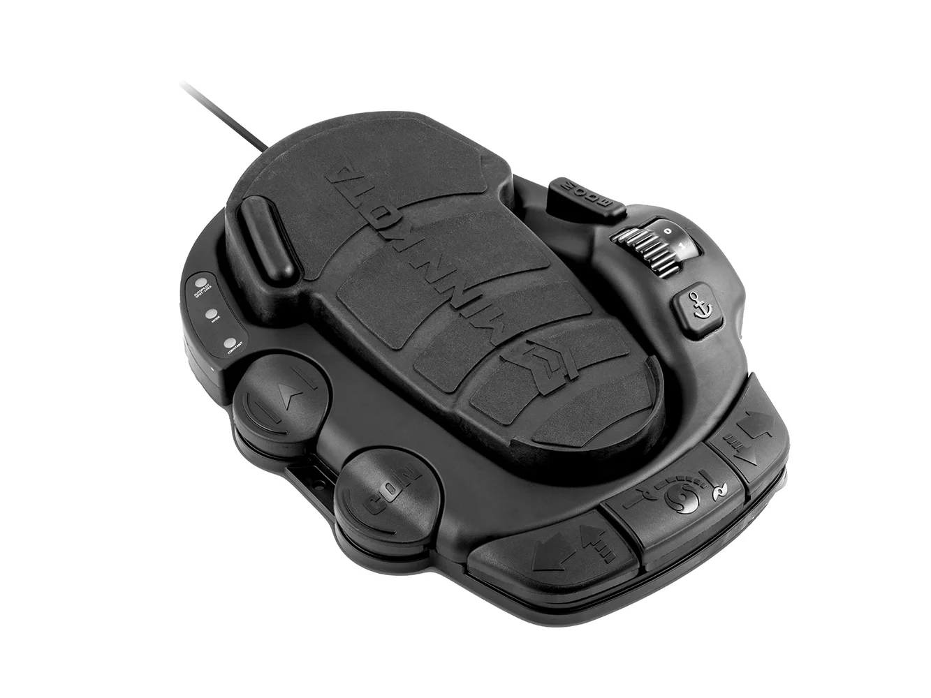 Dual mode operation controls AutoStow/Deploy and Power Trim as well as steering, speed, prop on/off, Spot-Lock, and AutoPilot. Includes an 18′ cord with a waterproof connector.