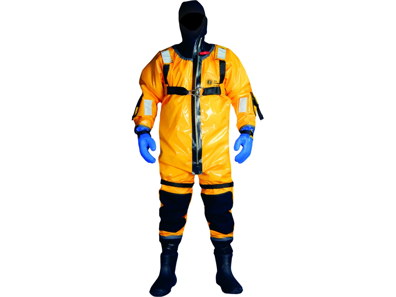 Each Ice Commander™ has an integrated chest harness for attachment to tether lines, ice awl pockets for storage, rubber gloves, reinforced knees, and non-slip rubber soles on the attached boots. As well, each suit is 45% lighter than other rescue suits as it is made in a high-visibility welded nylon shell.
