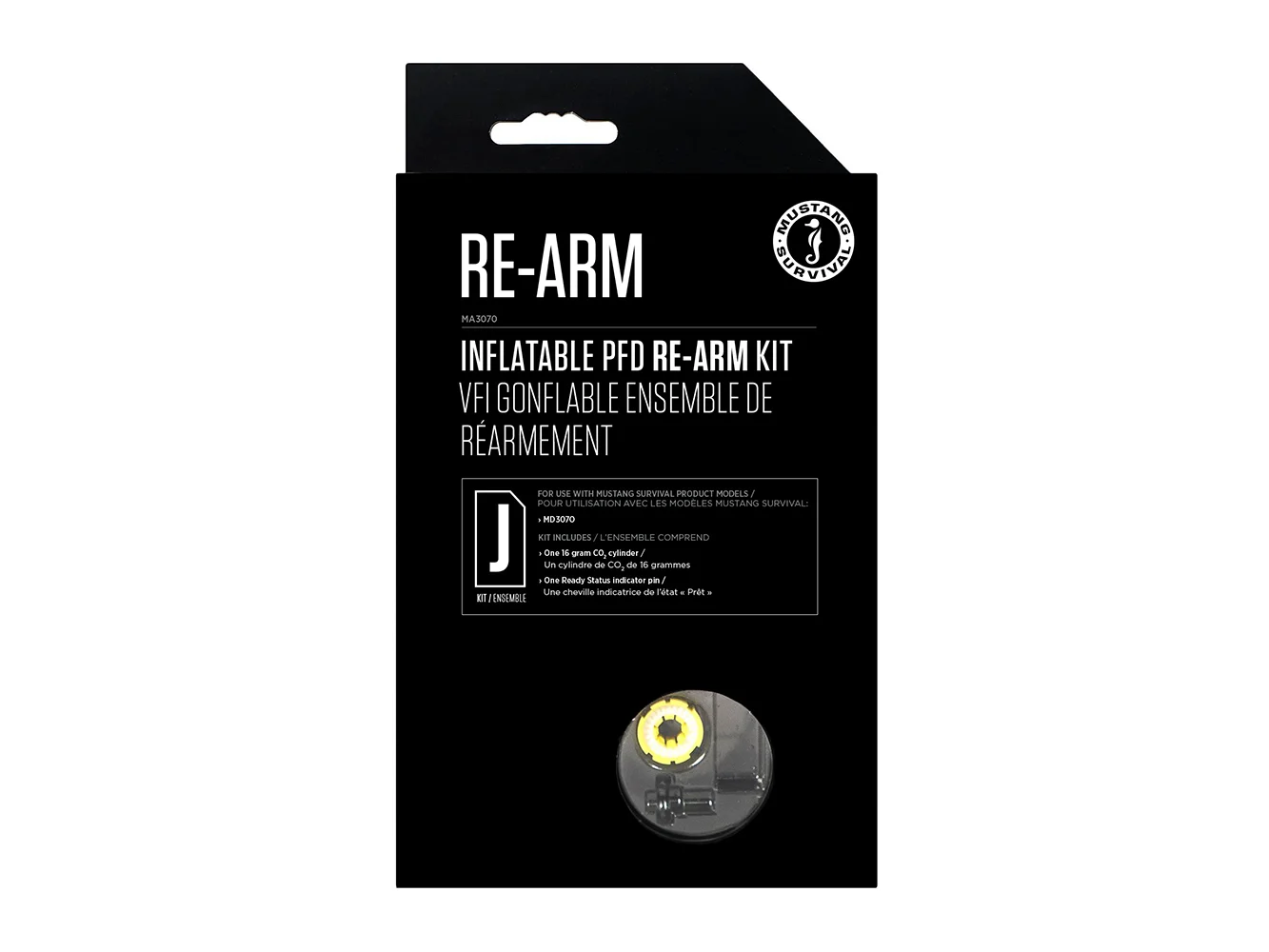 Use only Mustang Survival re-arm kits. Use of other re-arm kits may result in improper operation or failure to operate and will void the product’s warranty.