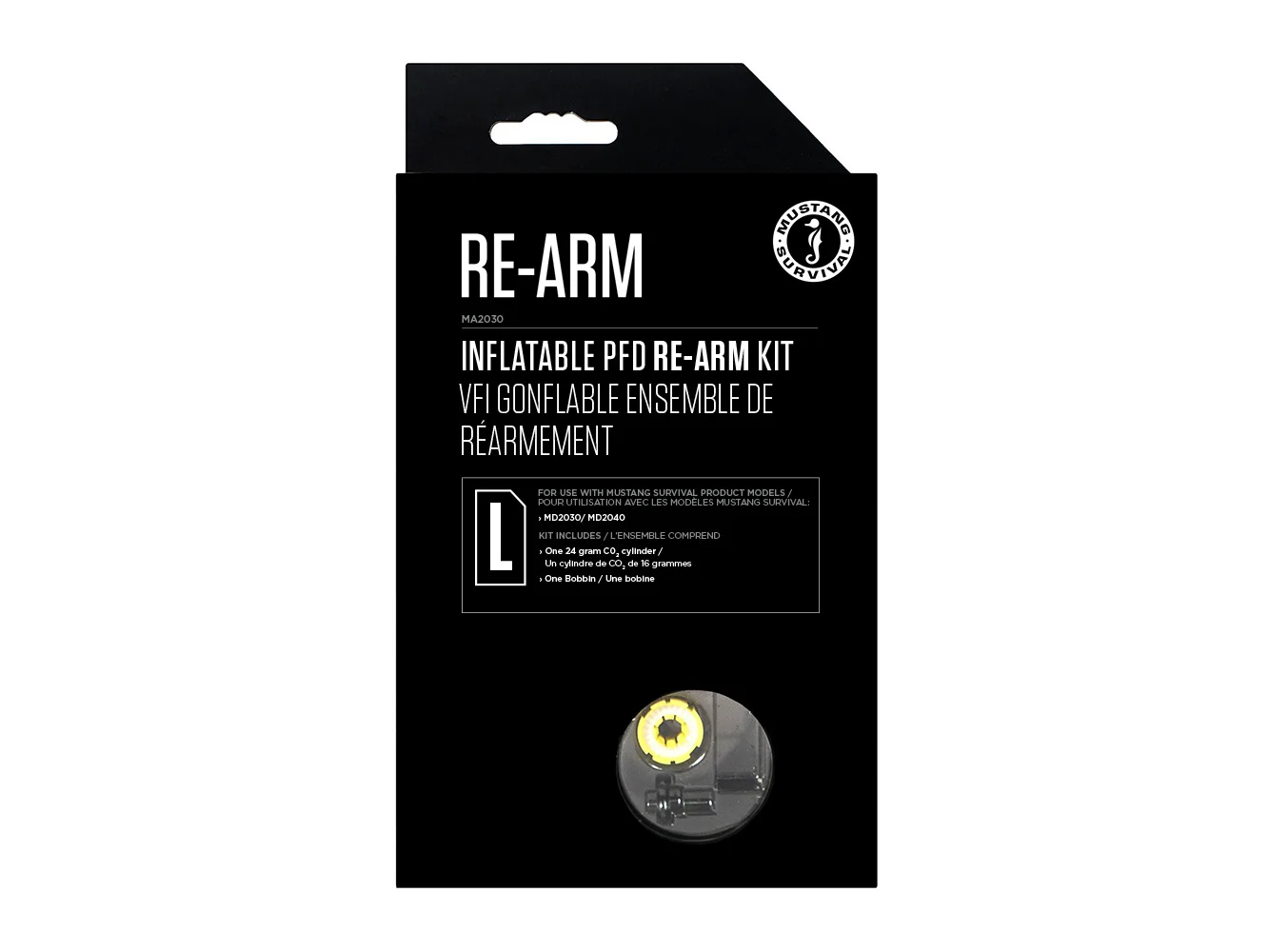 The Auto/Manual 24G Inflatable Re-Arm Kit contains everything necessary to re-arm the Mustang Survival MIT 100 Convertible A/M inflatable PFDs after deployment. The automatic inflator bobbin on all automatic PFDs should be replaced on a regular basis. Use only Mustang Survival re-arm kits. Use of other re-arm kits may result in improper operation or failure to operate and will void the product’s warranty.