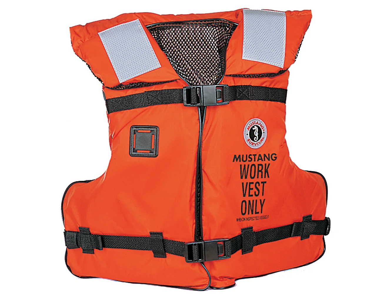 The Mustang Survival MV3192 Type III/V Work Vest is ideal for construction, law enforcement, and other personnel working on or near the water requiring an approved work vest. Designed to be safe, functional, and comfortable, the MV3192 Work Vest comes with SOLAS reflective tape on the front collar and back for enhanced visibility, a fast tab attachment point for a radio or other equipment, and a comfortable mesh lining. Side adjustments create a customized fit in a functional universal size.