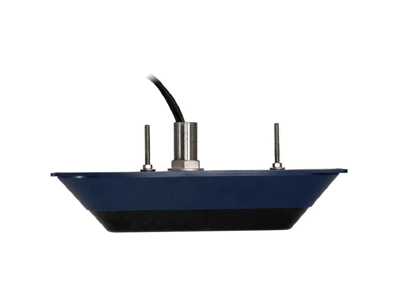 StructureScan 3D thru hull transducer with Low and High CHIRP. Single transducer for flat to hull mounting or fits deadrises up to 5 degrees with fairing block.