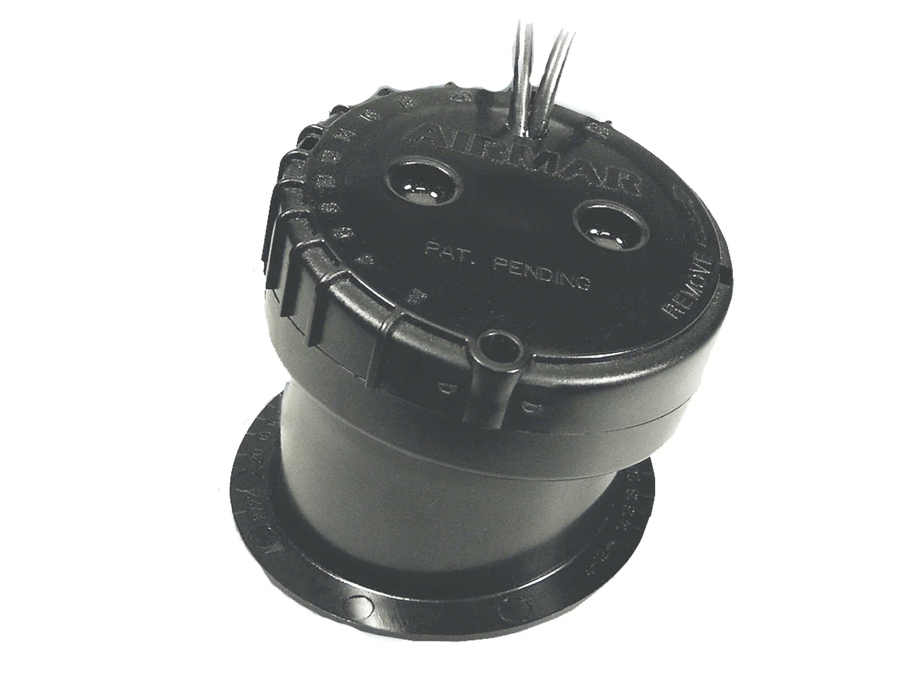 The 9-pin 600 W transducer has a depth of 800 to 1,200 ft; an operating frequency of 50 to 200 kHz; a beamwidth of 45 to 12 degrees; and a 0 to 22 degree deadrise.