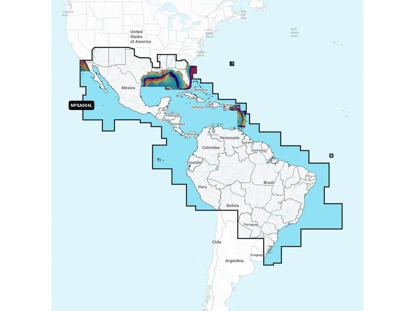 Coverage of Mexico, Central America and Brazil. Coverage includes the US Gulf Coast and the eastern US coast to Savannah, GA; Bermuda; the Bahamas; Cuba; Hispaniola; Puerto Rico and the Virgin Islands; the Windward and Leeward Islands; Jamaica; the Panama Canal, the western coast of South America to Arica, Chile; the Galapagos Islands; the Revillagigedo Islands; the Ilha Fernando de Noronha; the Saint Peter and Saint Paul Archipelago and the Rocas Atoll.