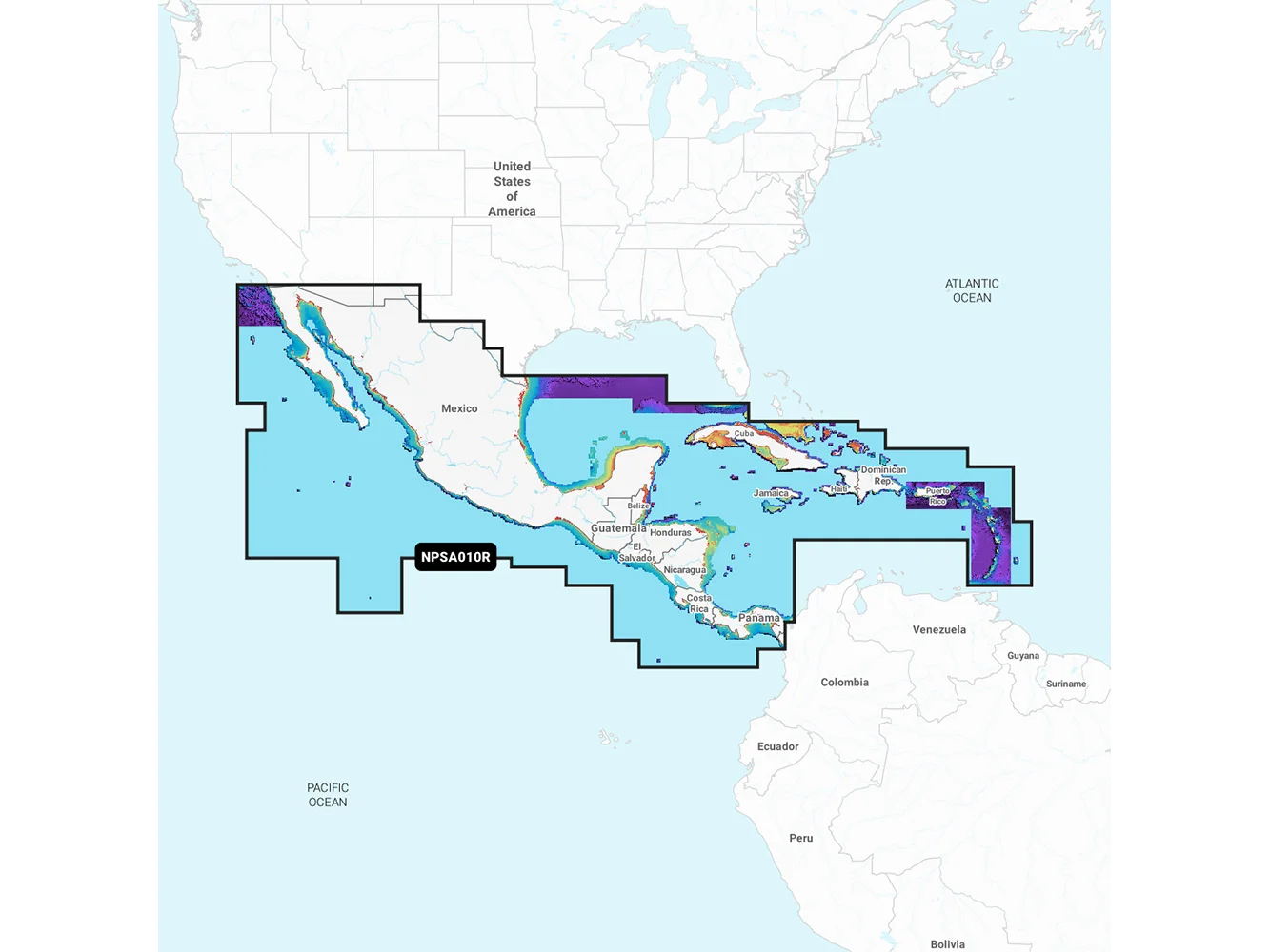 Detailed coverage west coast of Mexico from Tijuana to Panama. Including the Panama Canal in its entirety. East Coast coverage from Panama to Brownsville, TX. Also includes detailed Caribbean coverage of the Far Bahamas, Turks & Caicos, Cuba, Jamaica, the Caymans, Haiti, Dominican Republic, Puerto Rico, and the Lesser Antilles To Grenada.