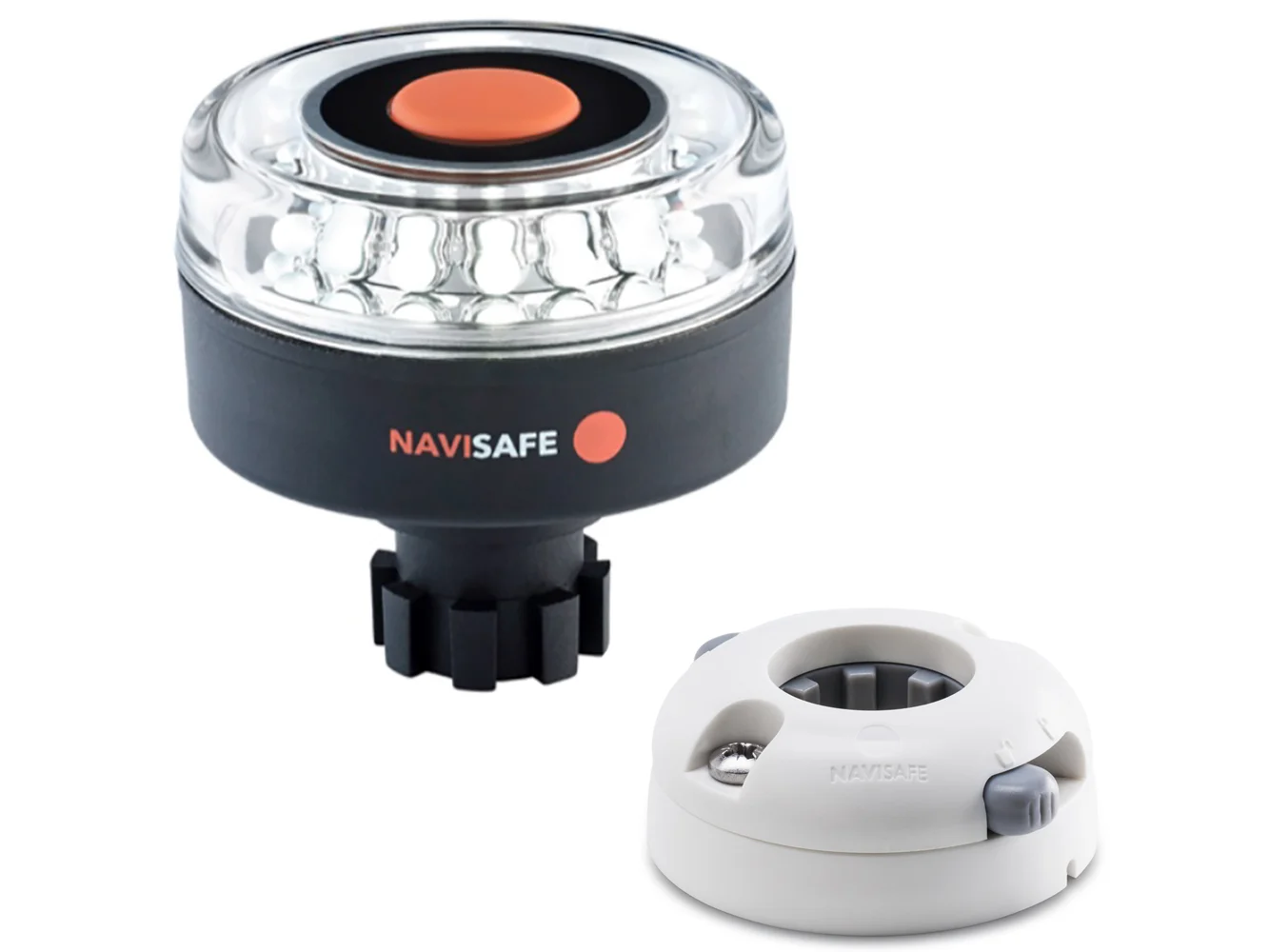 Portable All-round white Navilight with Navibolt base, compatible with Navisafe Navimount system. This is an extremely durable and strong solution. It is a very low and tight mounting solution together with any of the Navimount.