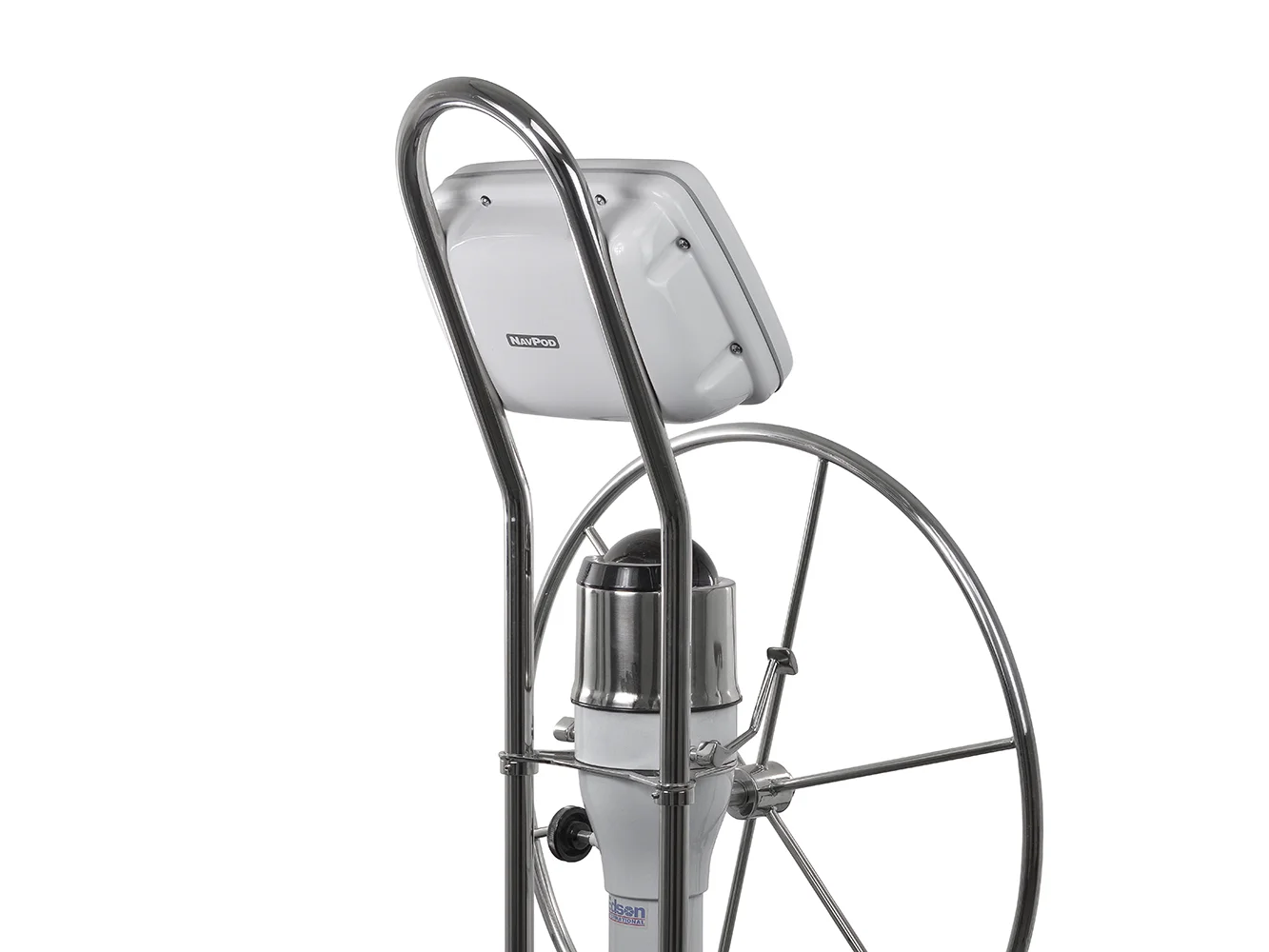 SailPods are for mounting a single Radar or Chartplotter at the helm. Navigation at your finger tips… “Where you need it, when you need it.” SailPods are the smart solution for mounting your Radar or Chartplotter at the helm where you can easily operate and clearly see the fine details of the screen. NavPods have a high gloss finish, giving you a clean mounting solution while concealing unsightly wires. Nickel Chrome-Plated tamper-resistant screws provide a little bling and a lot of security. Designed with a double gasket waterproof seal, NavPods protect your electronics from the harshest of wet offshore boating conditions. A SailPod is best mounted on a Single Bend AngleGuard, or on the angled section of a Double Bend Angle Guard with an InstrumentPod mounted above it on the straight section.