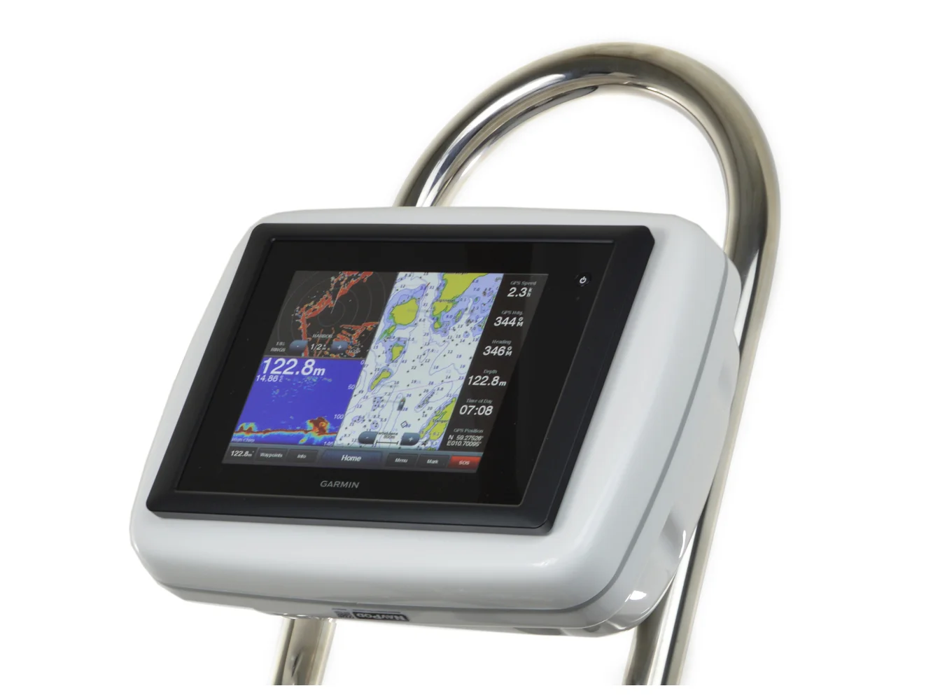 GP1800 Series for 9.5″ Guard, SailPods for Sail are for mounting a single radar or chartplotter at the helm where you can easily operate and clearly see the fine details of the screen. A single SailPod is best mounted on a Single Bend AngleGuards or use a Double Bend AngleGuards to fit an InstrumentPod on the top vertical section and SailPod below on the angled section.