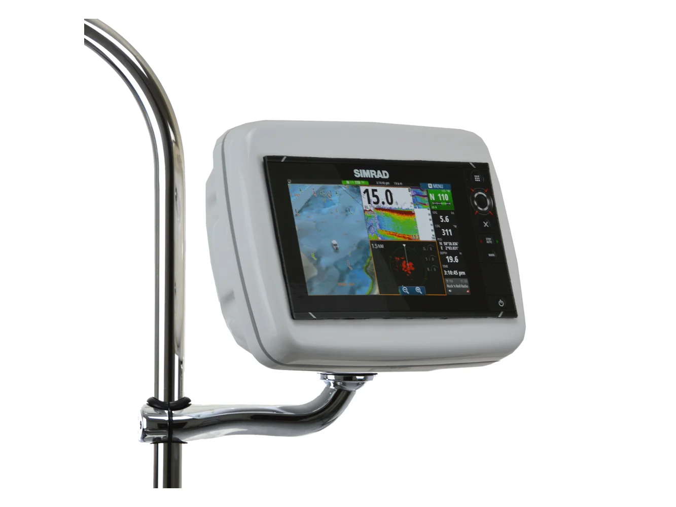 RailMount NavPods are best used for mounting of an autopilot control, sailing instrument, or small chartplotter onto an existing pedestal guard. Fits onto any 1″ or 1.25″ diameter tube. A Chromed Stainless Steel arm is used to mount a NavPod. The NavPod can rotate 180 degrees for easy viewing while sitting under the dodger on a rainy day. All wire run from the NavPod, down the center of the stainless steel arm, and into the pedestal guard. This application provides a clean and sturdy installation for electronics, without replacement of the pedestal guard.
