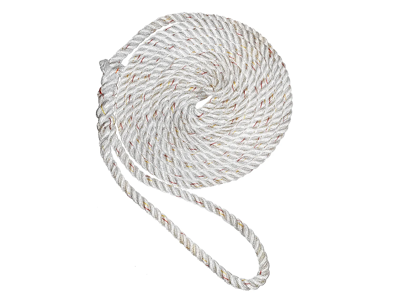 1/2″ Premium 3-Strand Dock Line – White with Tracer – 15′