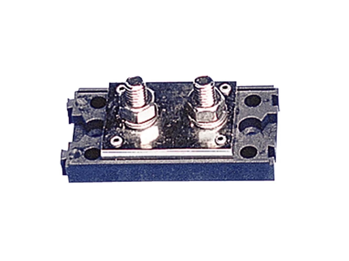 Ideal as a DC ground tie point or positive bus, this heavy-duty, 500-amp-rated bus bar assembly features 5/16 in. studs on 1 in. center in 1/4 in. thick copper bar for common connection or distribution of large wire gauges.
