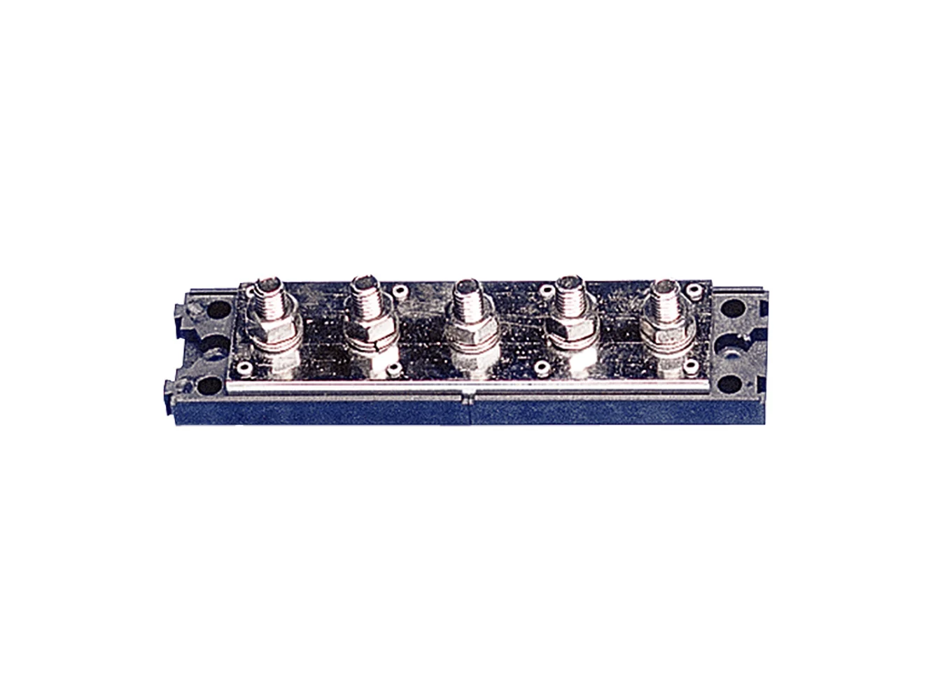 Ideal as a DC ground tie point or positive bus, this heavy-duty, 500-amp-rated bus bar assembly features 5/16 in. studs on 1 in. center in 1/4 in. thick copper bar for common connection or distribution of large wire gauges.