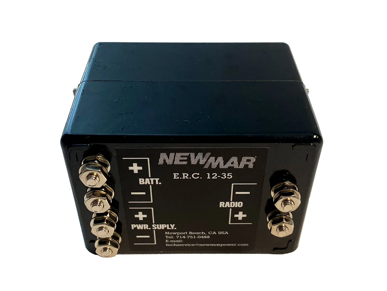 Select a suitable location as close to the battery as possible where there is no likelihood of accidental contact and shorting of the terminals. The ERC may be mounted vertically, horizontally, or even upside-down, if necessary, without affecting its operation. Two # 10 sheet metal or wood screws will be needed. Mounting on a metal surface is acceptable as the inputs and outputs are isolated from the mounting bracket.