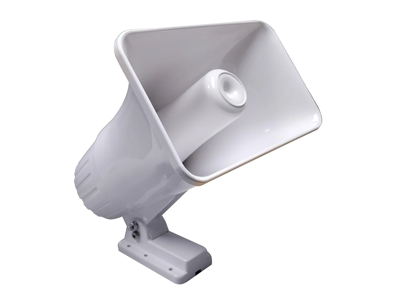 Clear, distortion-free, waterproof deck horns are ideal for shipboard paging, hailing, fog horns, and alarm systems. high-impact plastic construction and assembled with stainless steel hardware. 8 Ohm.