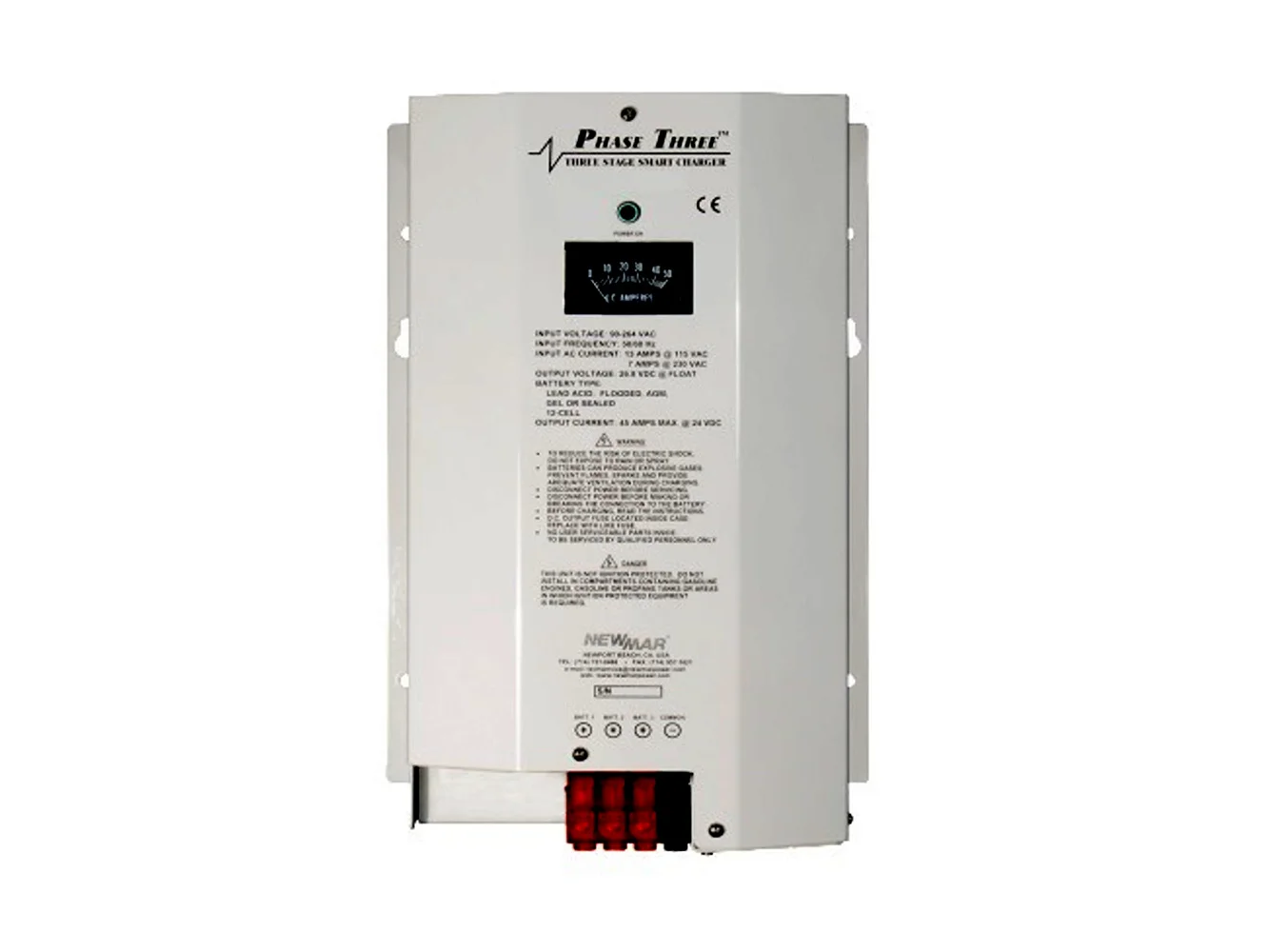 “Smart” marine battery charging technology for 24-volt systems aboard workboats, military vessels, commercial vessels, and recreational craft. This charger interacts with batteries, providing the optimum three-stage charge process for fast recovery and conditioning, maximizing performance, and extending battery life.