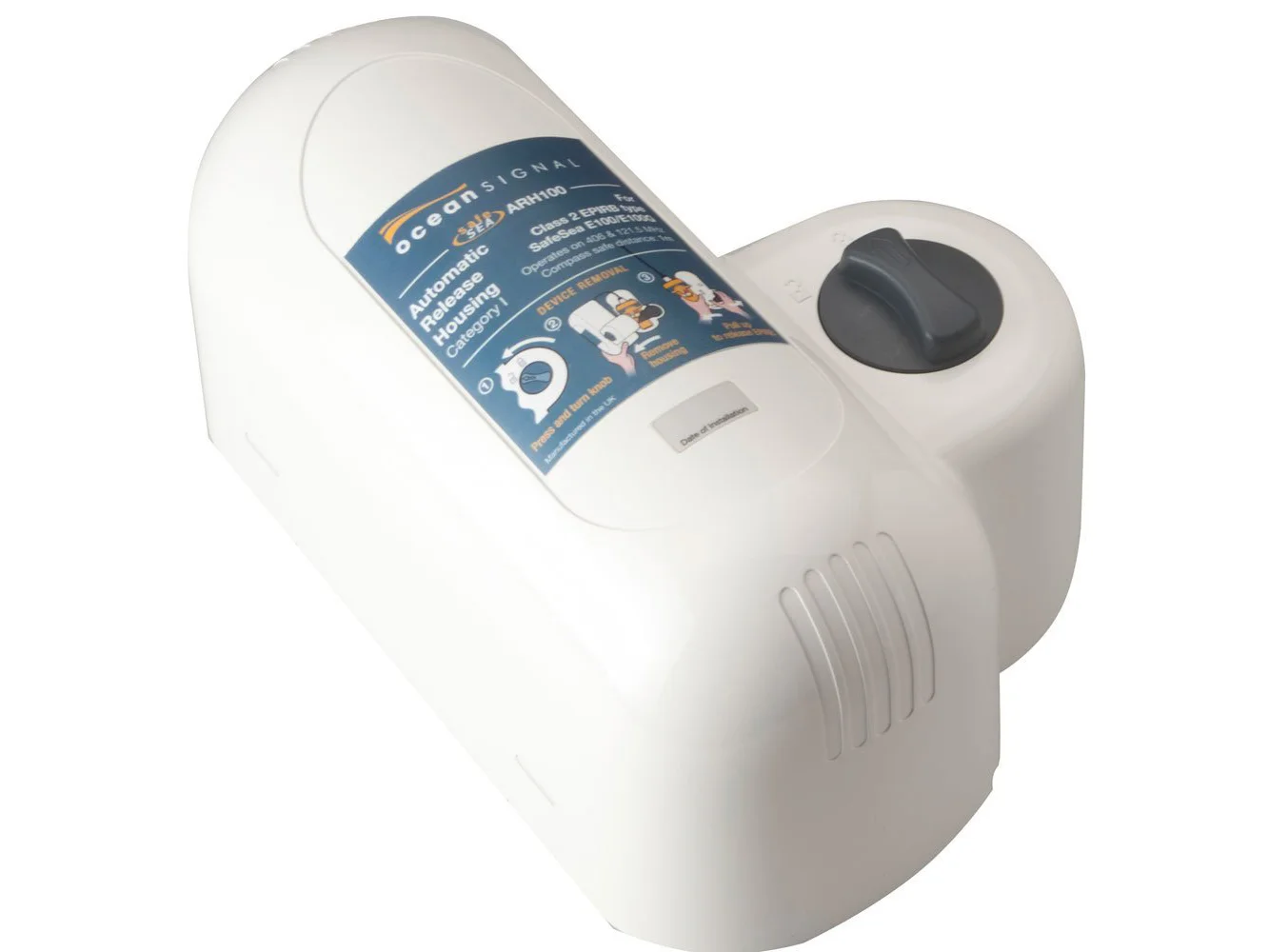 ARH100 automatic release housing, containing a hydrostatic release mechanism which automatically deploys the EPIRB if the vessel is sinking