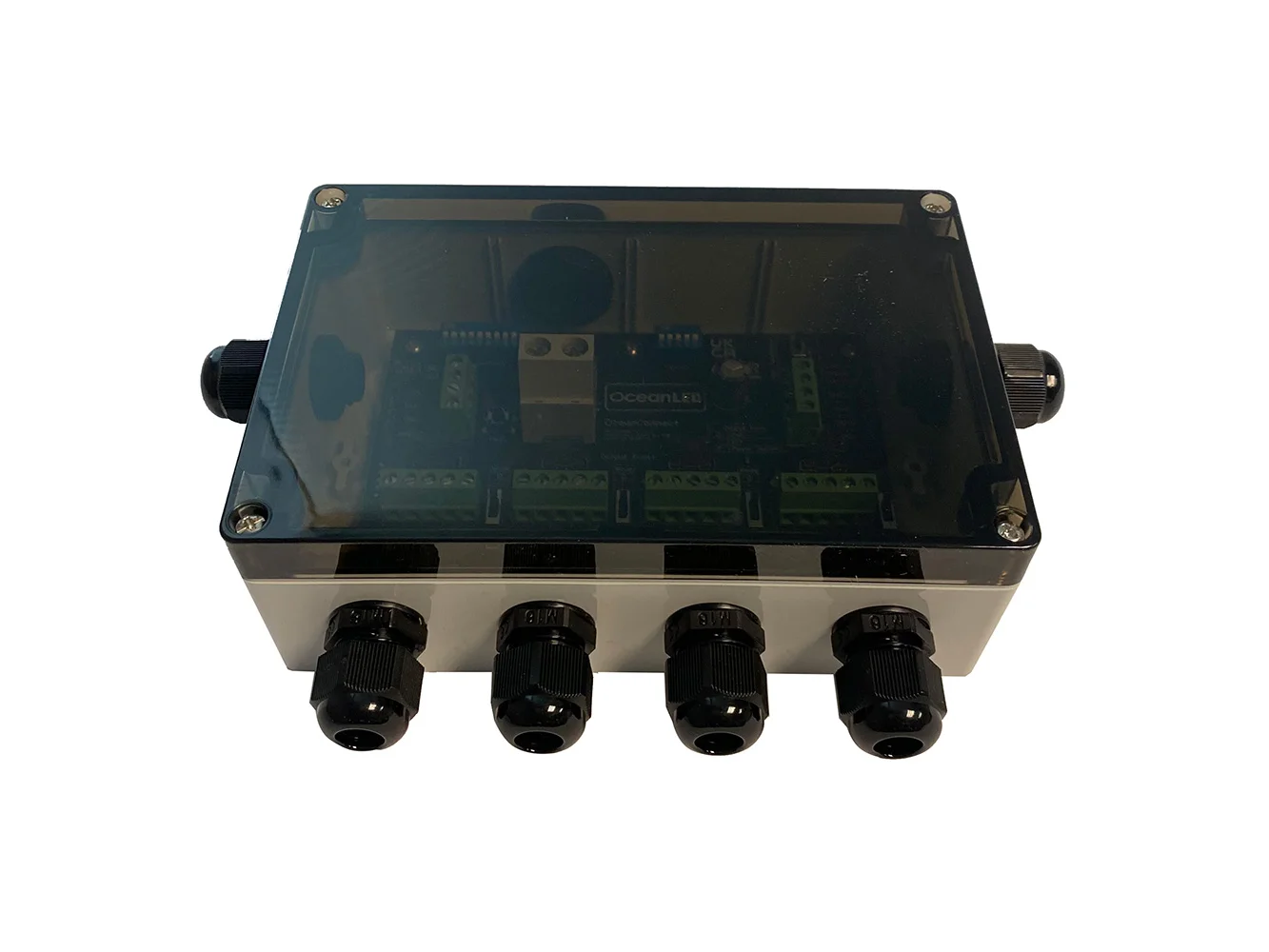 The OceanConnect is a waterproof (IP66) DMX-controlled, low-voltage DC (9–32V) junction box.