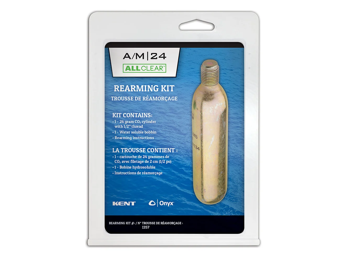 Inflatable life jackets can be reused after each inflation but the CO2 cylinder needs to be replaced before using again. Use an Onyx rearming kit to keep yours ready. It is recommended to purchase an extra rearming kit to try out your inflatable life jacket and become familiar with its operation. Be sure your inflatable PFD is properly armed and ready to use before you head out on the water. Always read your Owner’s Manual for the proper way to initially arm your life jacket with the CO2 cartridge, and how to re-arm it after it has been inflated. Instructional videos available at Onyxoutdoor.com.