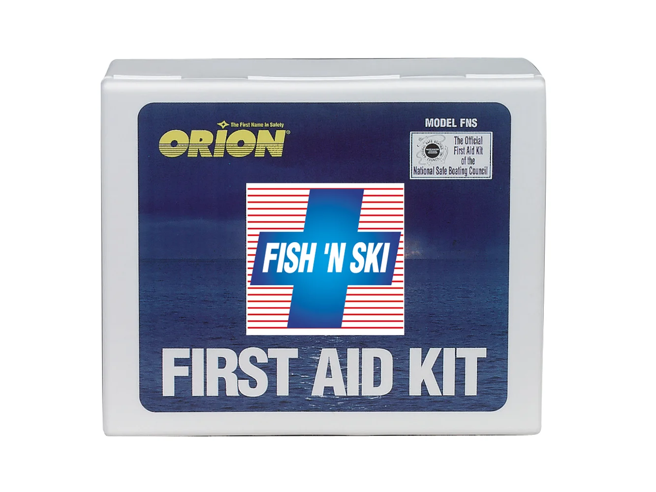 The perfect size marine first aid kit for a small craft. Plastic case with gasketed dual locking lid that fits easily into a small storage area on a boat.