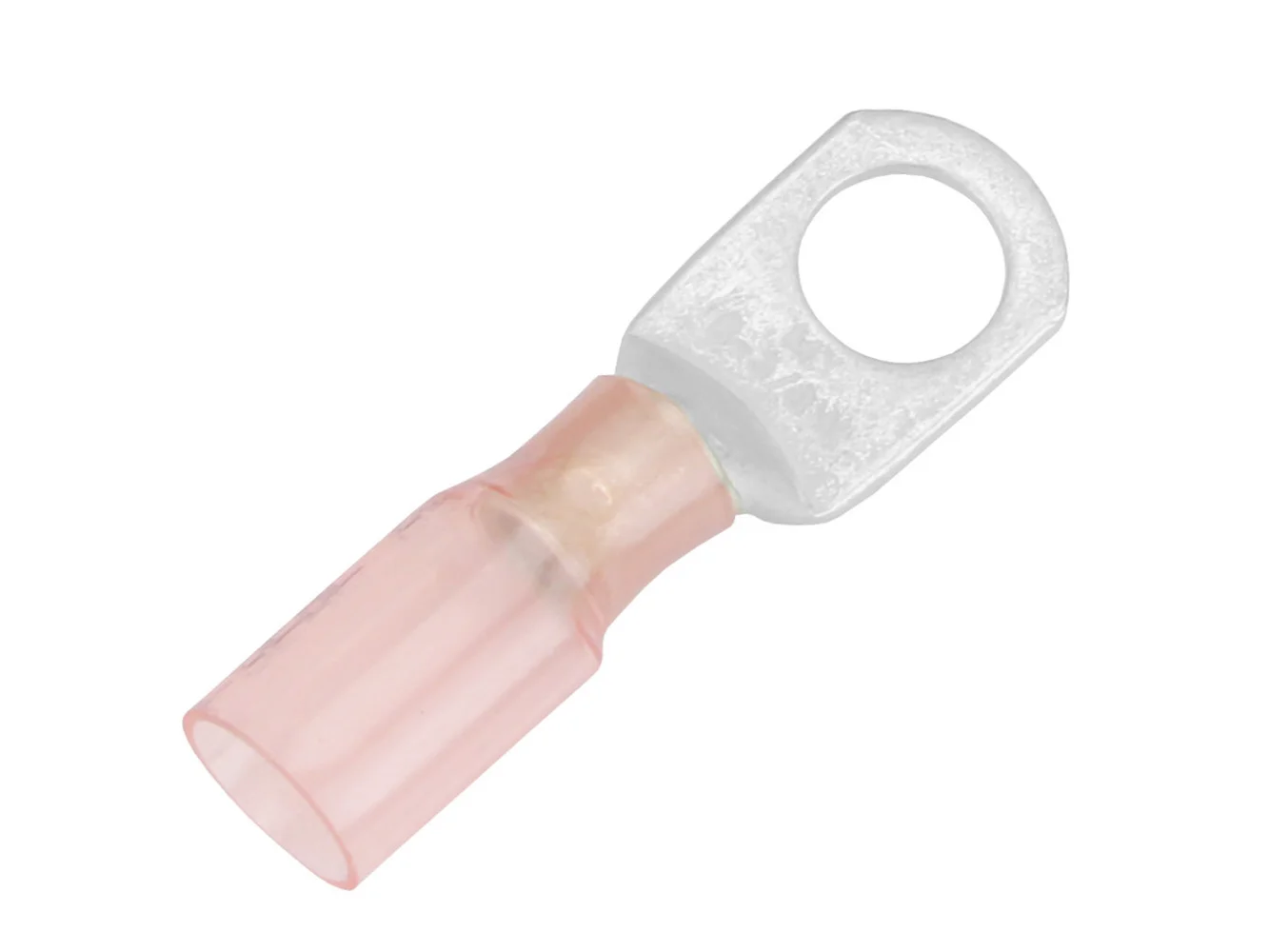Ring terminals are a trusted way to create an electrical connection. By using ring terminals, users don't need to worry about the connector coming off. The ring fits over a stud or screw and doesn't pull loose as other terminals may. Pink ring terminals are for 8 AWG wires. They are easy to use and offer long-term protection. Heat shrink ring terminals protect against the elements in the most challenging of environments. This makes them the best moisture protection available. Heat shrink ring terminals possess a heat-activated adhesive liner. This liner is built to provide a durable, rugged, environmentally sealed connection for 8 AWG wires. Selecting the correct ring terminal isn't always an easy task. Contact a Pacer expert with any questions that you may have.
