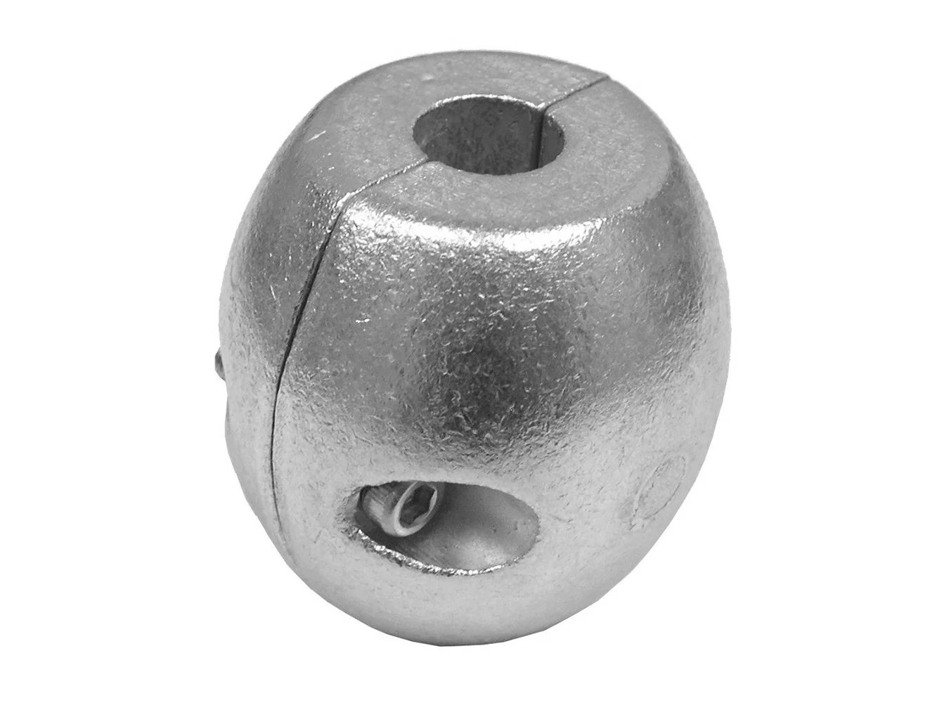 Aluminum shaft anode with 2 halves and stainless steel hardware.