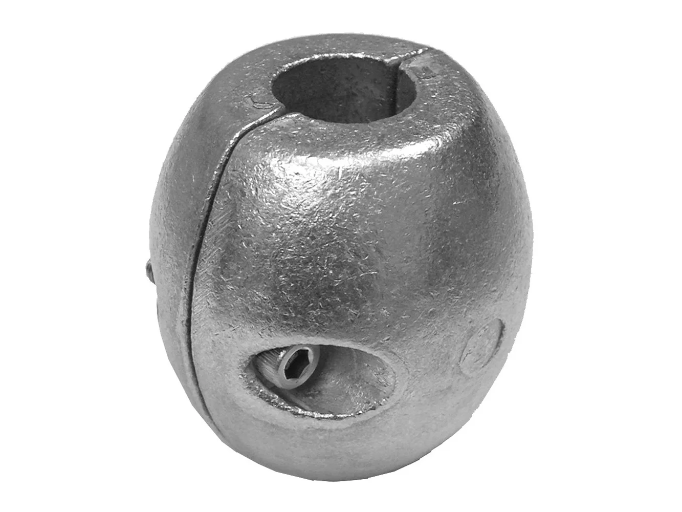 Aluminum shaft anode with 2 halves and stainless steel hardware.