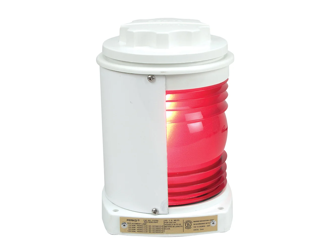 This Perko red side light is certified for use on vessels 20 meters (65.6 ft.) to 50 meters (164.0 ft.) in length.