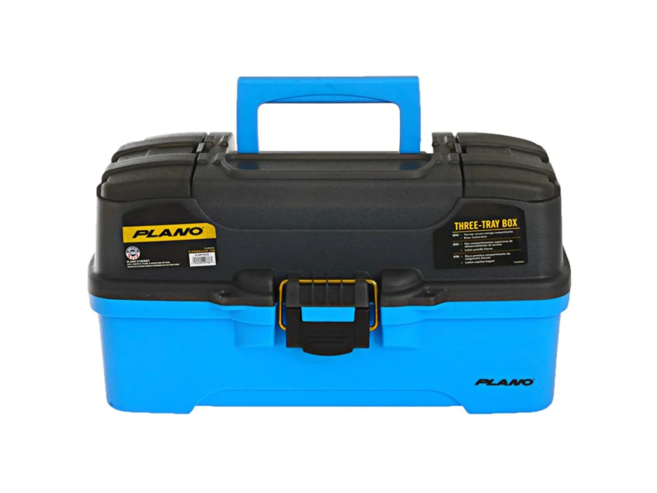 Largest of the Tackle Box series is the bright blue Three-Tray Tackle Box, features a three-tier cantilever tray extends when the angler opens it. The trays feature 22 to 34 adjustable compartments. Like the One and Two-Tray Boxes, the Three Tray provides top-access storage as well as bulk storage for larger items in the bottom and sports a brass-bailed latch ensures the box closes securely and provides lasting use.