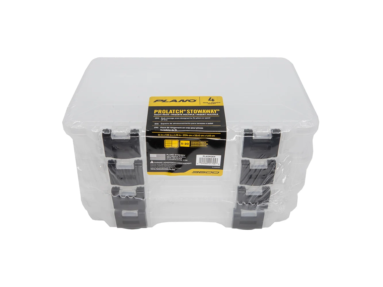 A shrink wrapped bulk package of one Plano’s most popular utility boxes, the Plano ProLatch Stowaway Utility Box 4-Packs are perfect for guides, professional anglers, or anyone storing and organizing large collections of tackle. These boxes are ideal for use in a wide variety of tackle bags and are the perfect size to fit in tackle storage compartments on many boats. The 3650 size boxes feature 5 fixed storage compartments with adjustable dividers to create up to 18 compartments per box.