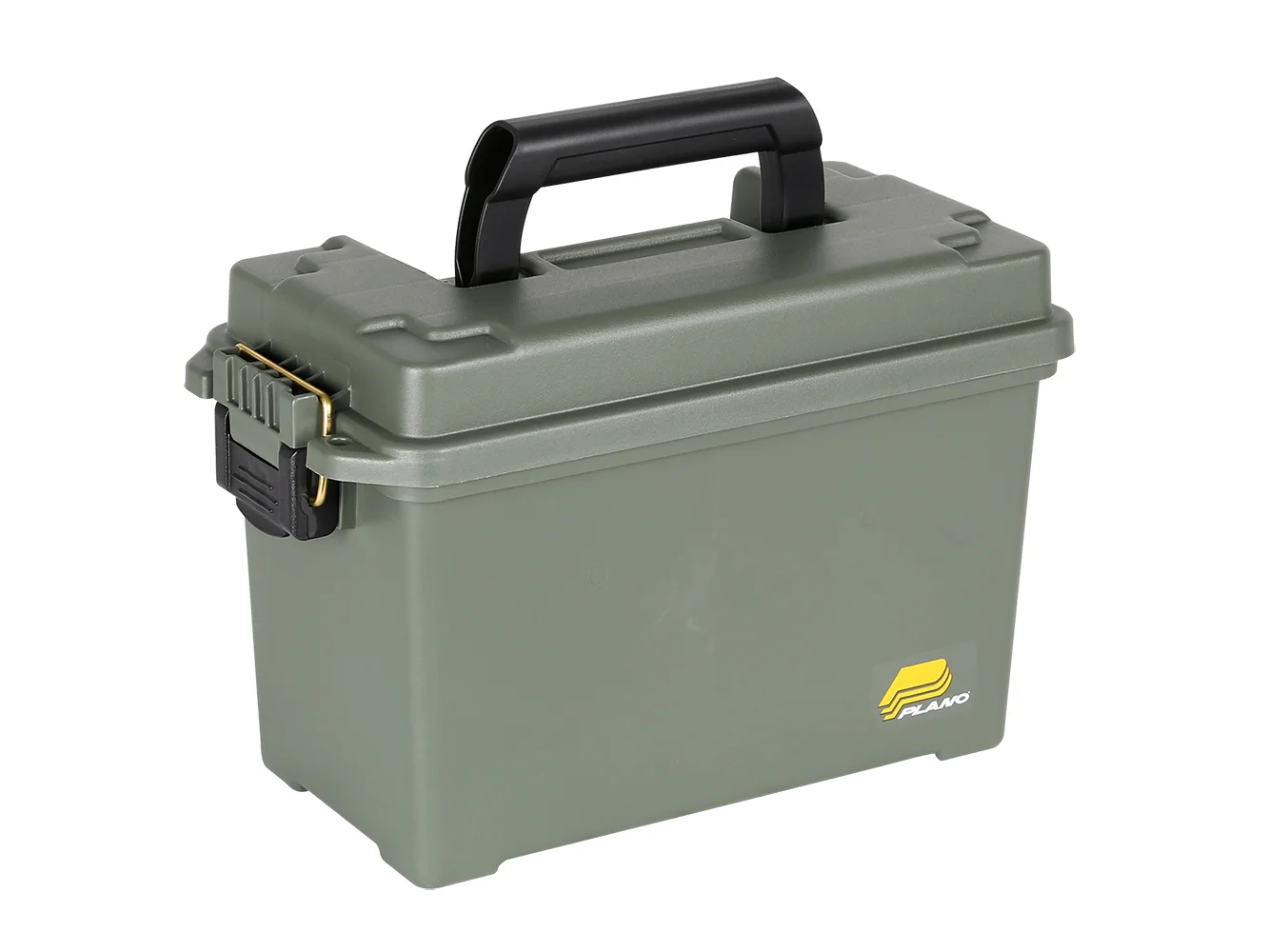 A very Handy Ammo or Accessories case with the benefit of being fully waterproof. The full-length o-ring seal keeps the box airtight to prevent dust and other fine unwelcome objects from entering. This mid-sized storage box is ideal for .50 cal ammo storage, but the element-proof medium field ammo box can hold so much more than that! The water-resistant O-ring seal and brass-bailed latch secure contents to keep dust and water out. Protect .50 caliber ammunition, power tools, electronics with this heavy-duty storage box from the storage experts at Plano.